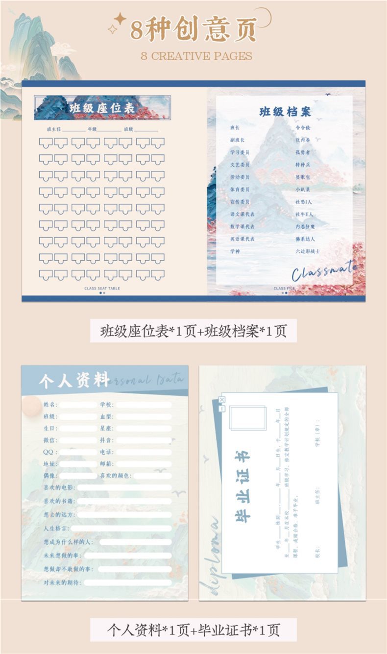 Китайский стиль, альбом для выпускников, запись о росте для учеников шестого класса начальной школы, 2025, новый альбом для общения