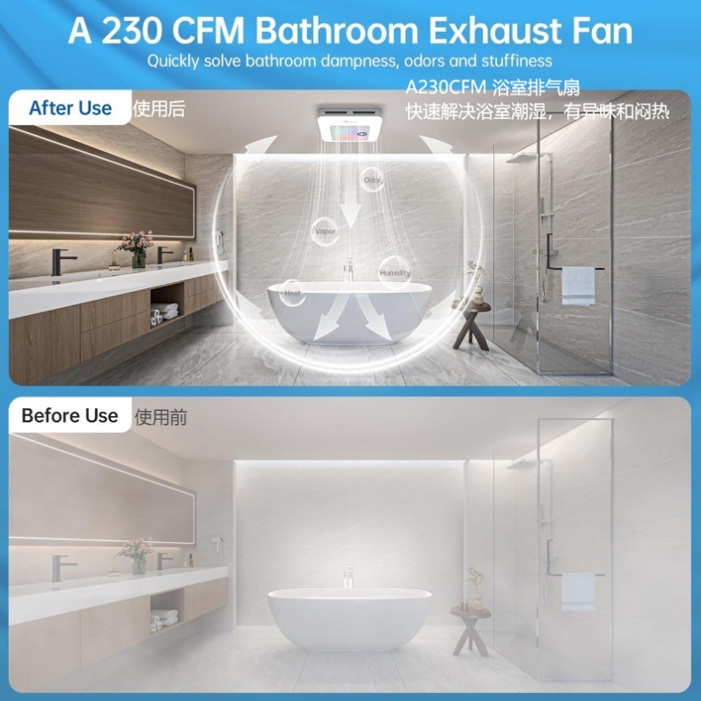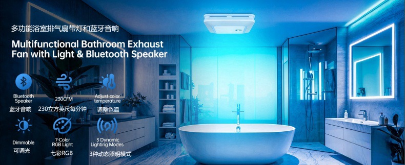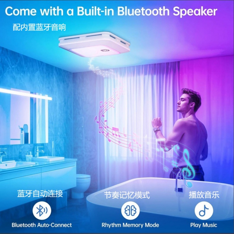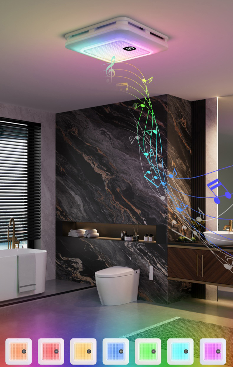 Вытяжной вентилятор для ванной с Bluetooth колонкой 3 динамических света 3 цветовые температуры ночной свет 110В