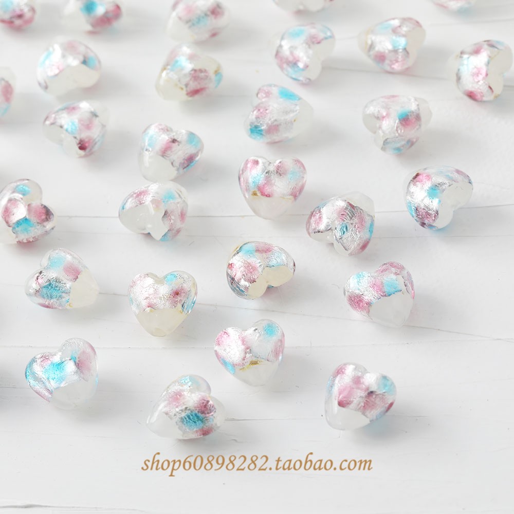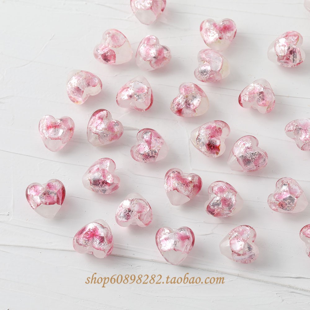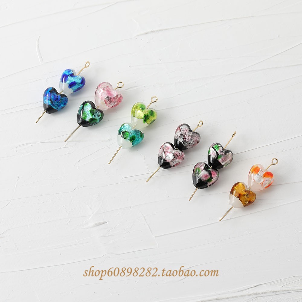 Серьги в форме сердца из стекла с серебряной фольгой, маленькие, свежие, прямые отверстия, DIY, бусины, ручная работа, материалы для ожерелий и браслетов
