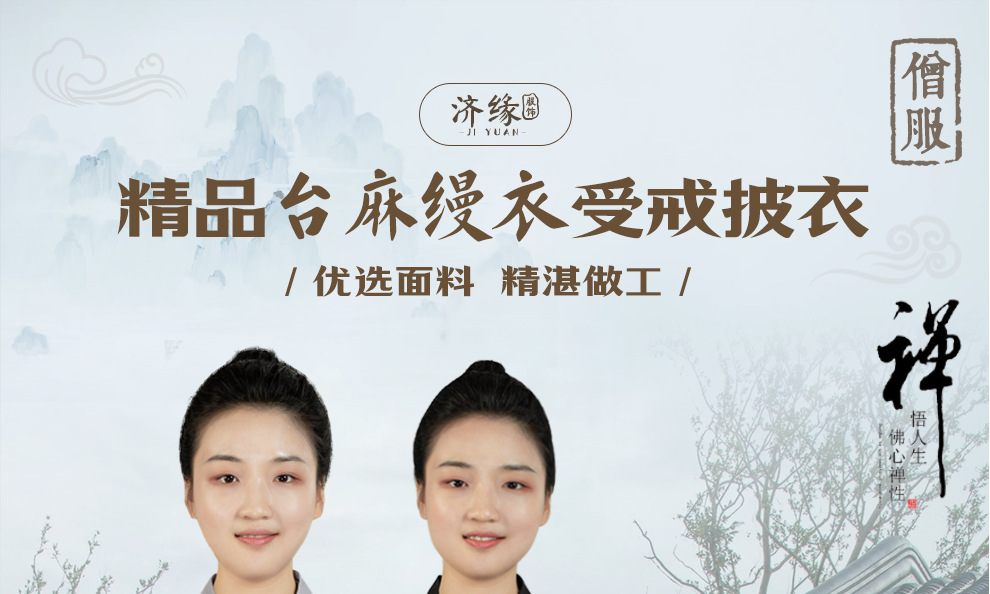 Мирянин Ji Yuan принимает пять заповедей, заповеди бодхисаттвы Манжушри, ряса из пяти и семи частей, ряса и морская зеленая ряса