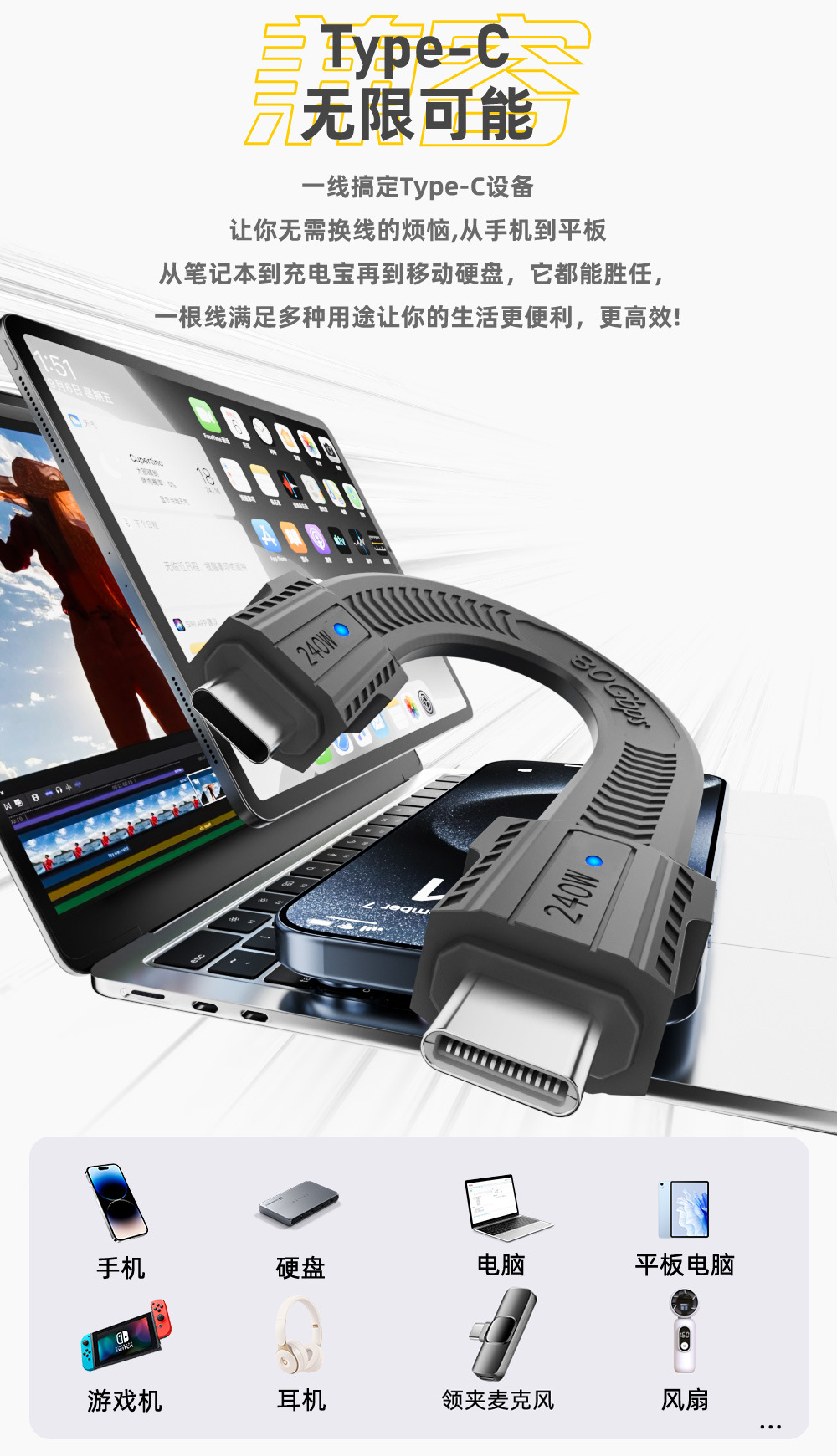 支持:240W/80GBps/PD快充