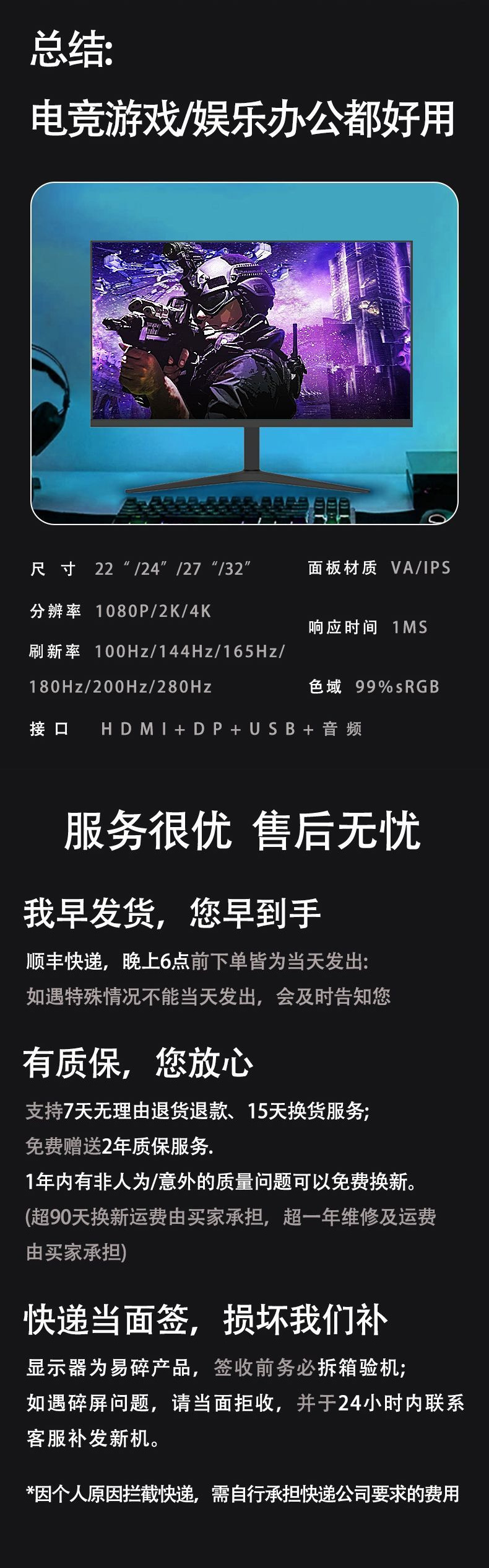 ![]() | [black] brand new original a+ screen - 24inch [2k+180hz] face to face | ¥875.91 / ≈ 10 654 ₽ | 966 | 5992190878627 | |