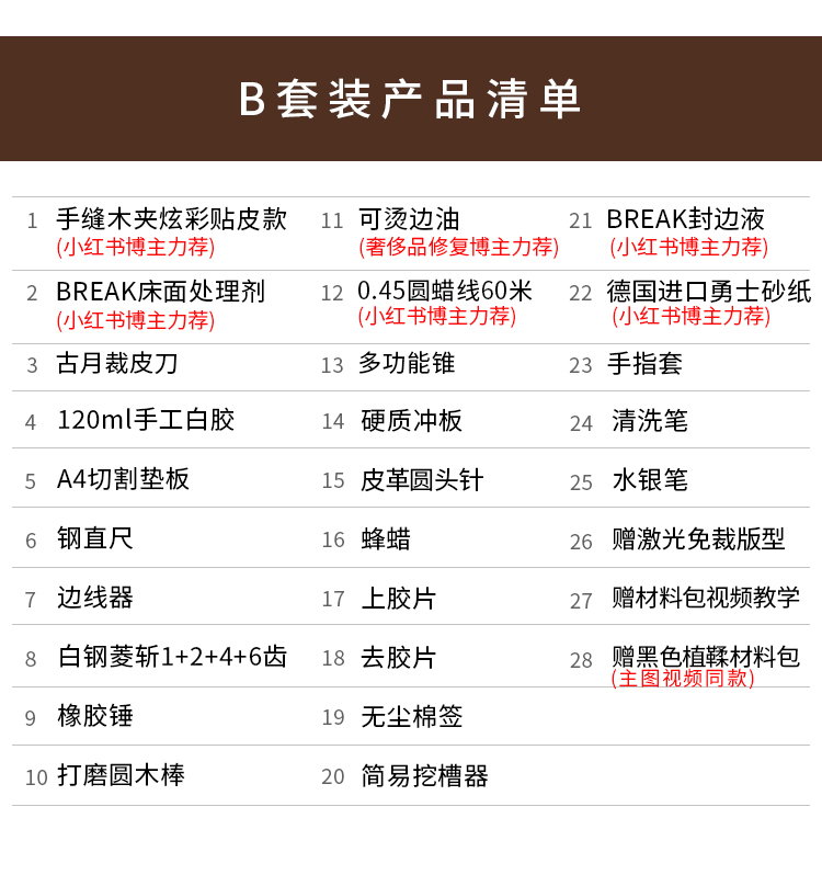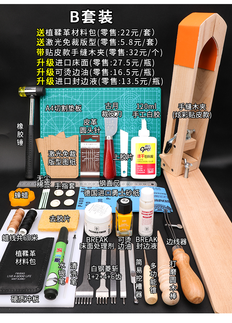 📦 | B set contains 28 pieces (hand-sewn wooden clips + ironable edge oil + imported chemical materials) [vegetable tanned leather material package] | ¥152.55 / ≈ 1 856 ₽ | 300 | 5829184793455 | |
