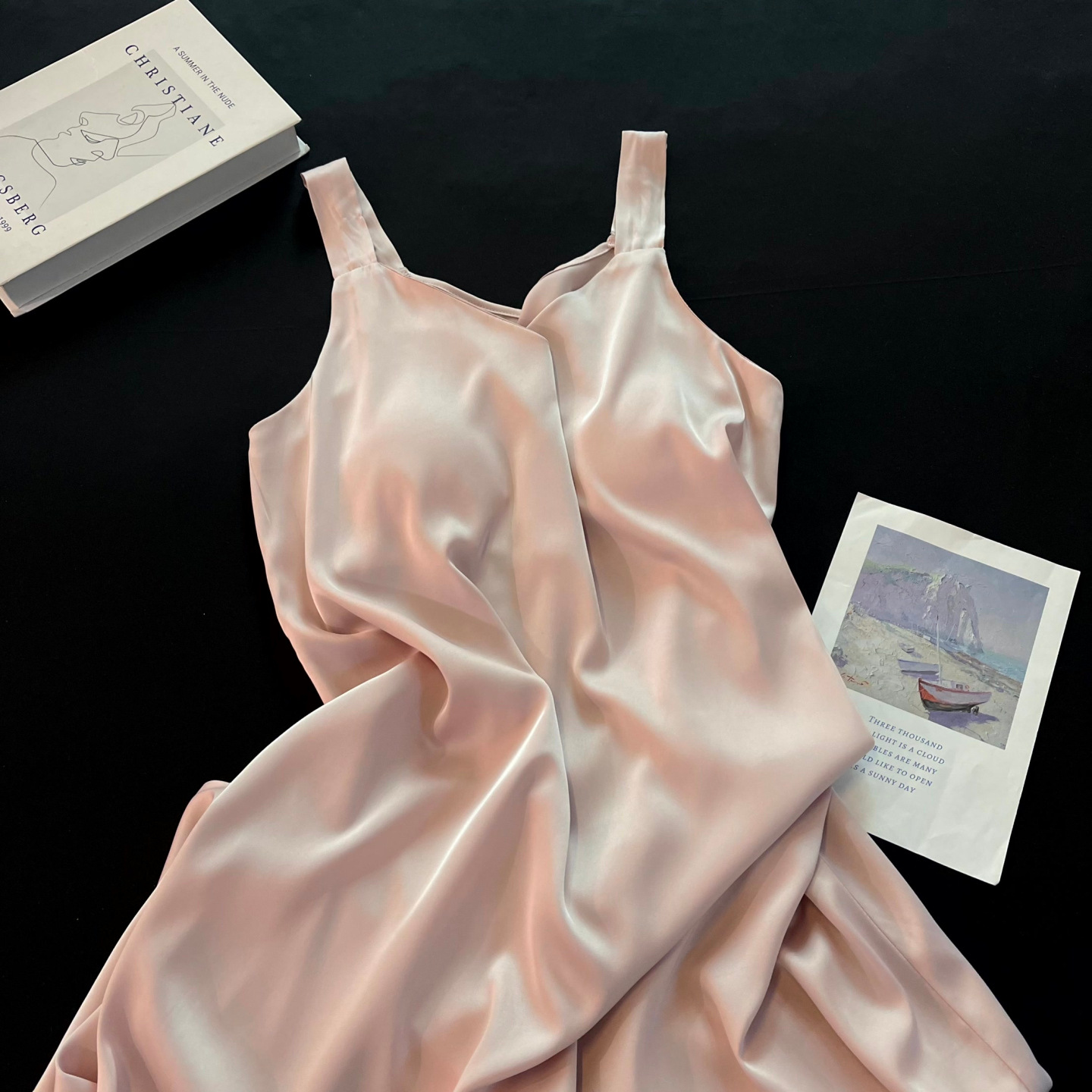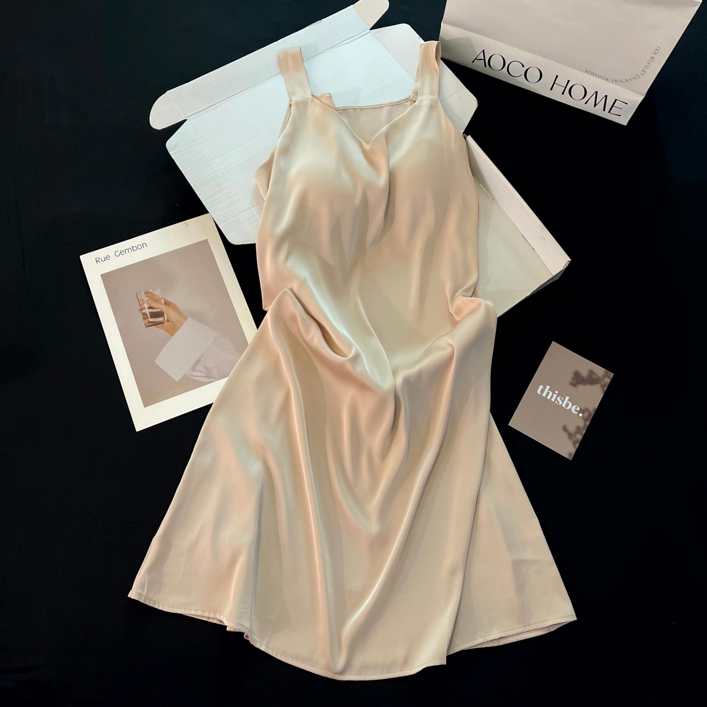 Ночная сорочка цвета шампанского с лямками и подушечками для груди, летняя, можно носить на улице
