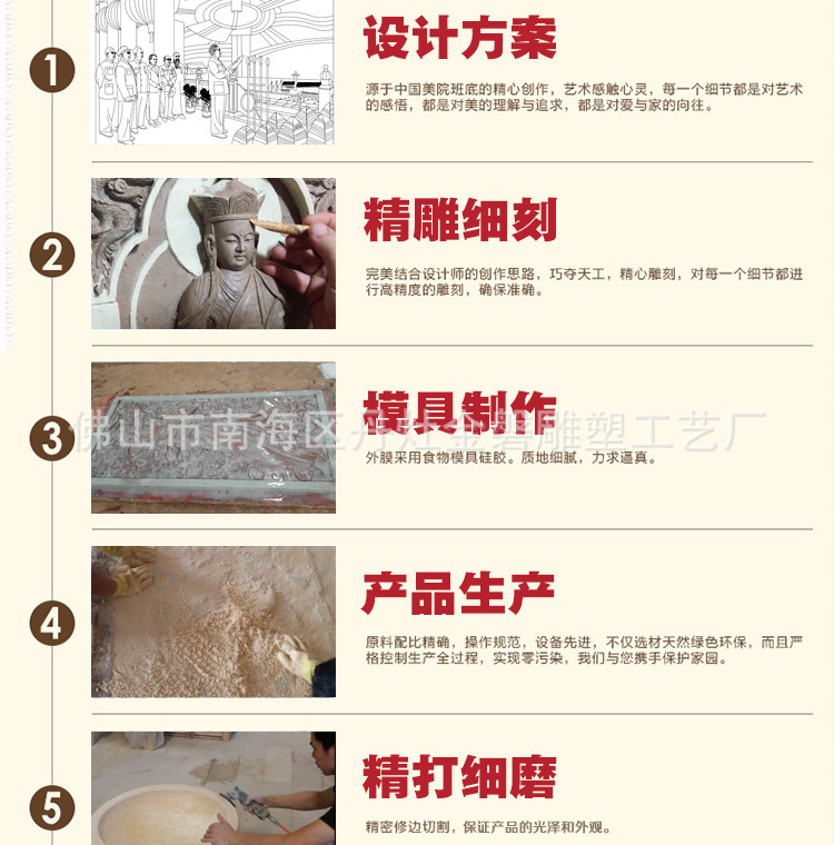 佛山市南海区金磐雕塑厂专业生产定制各类雕塑产品,材质有玻璃钢,人造砂岩、水泥、环保花盆等等。