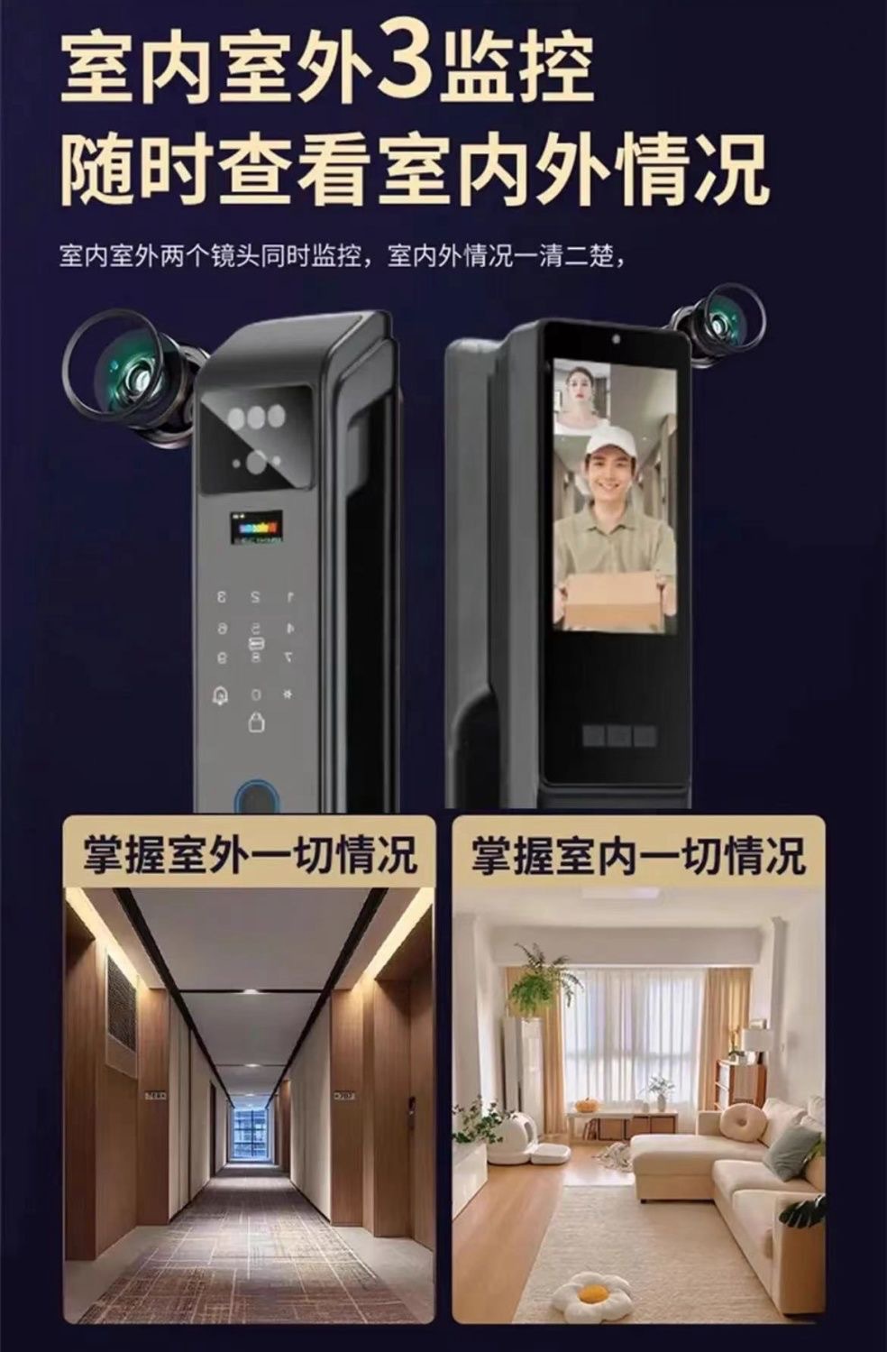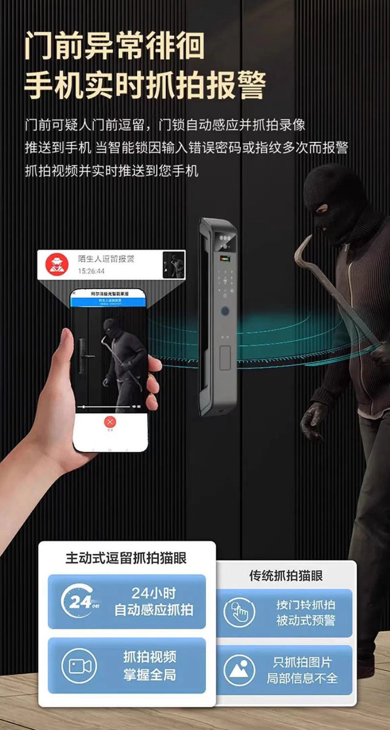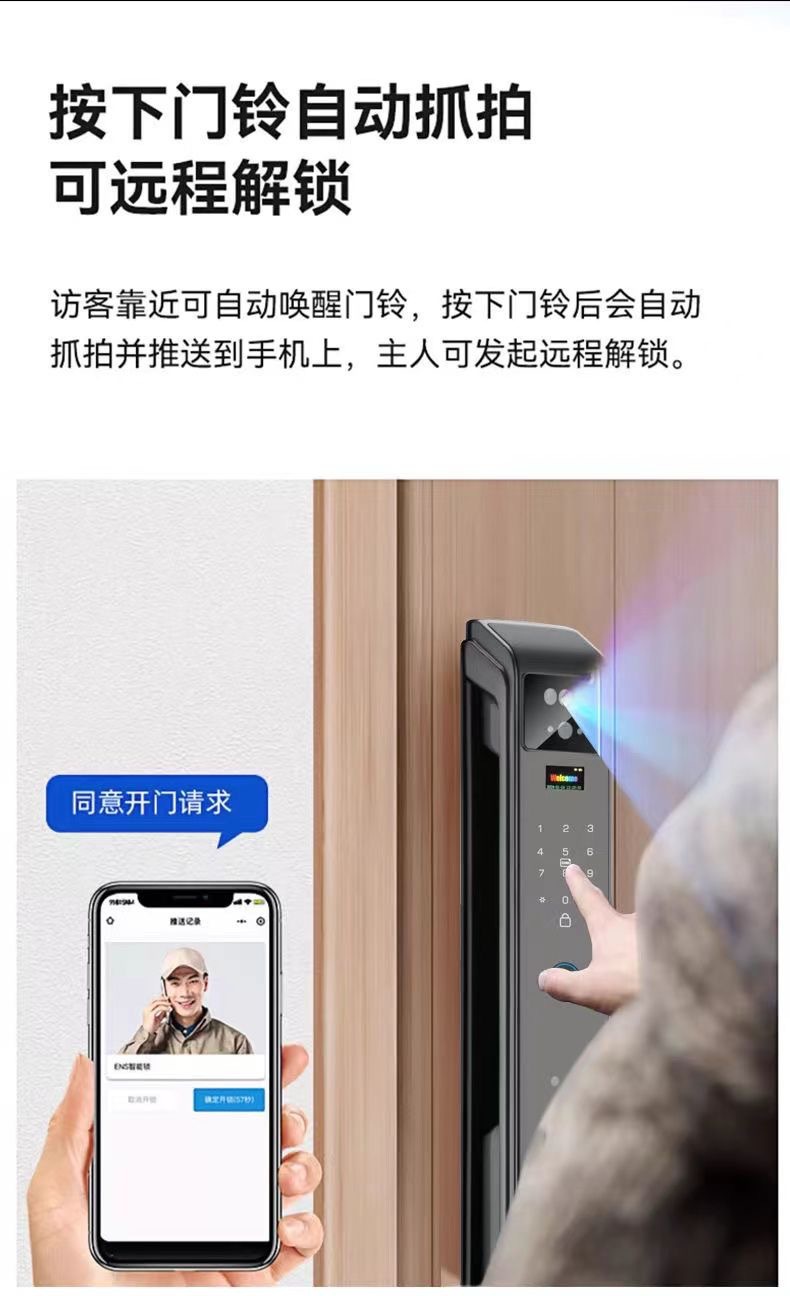 Стиль Fingerprint, Password, Bring key, Palmprint, Visible cat eye, Remote unlock