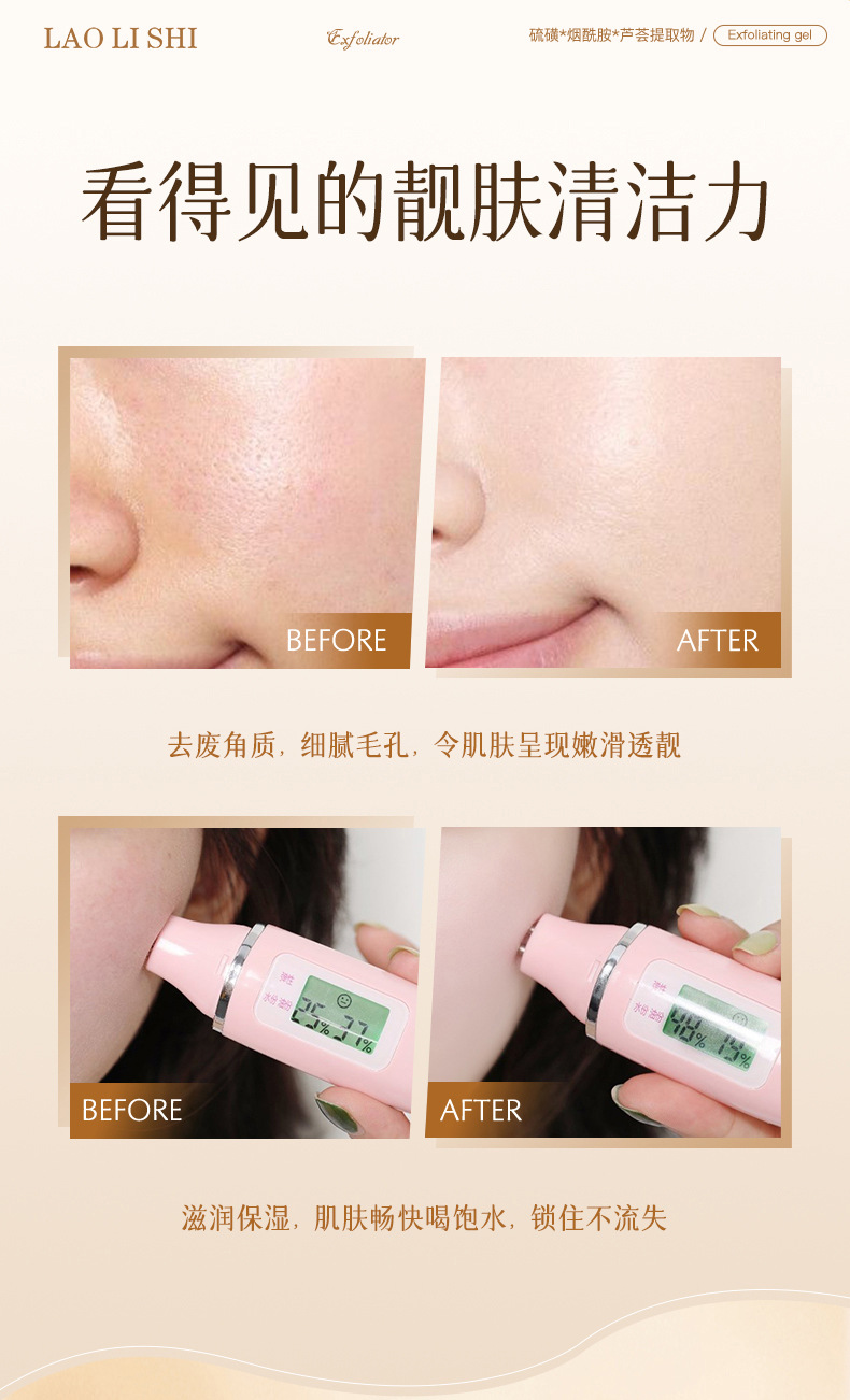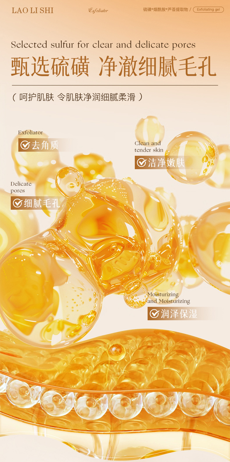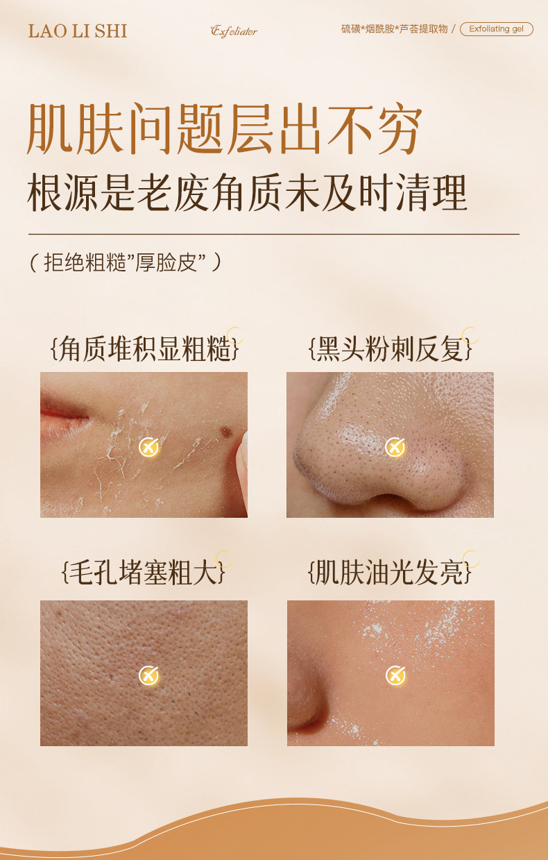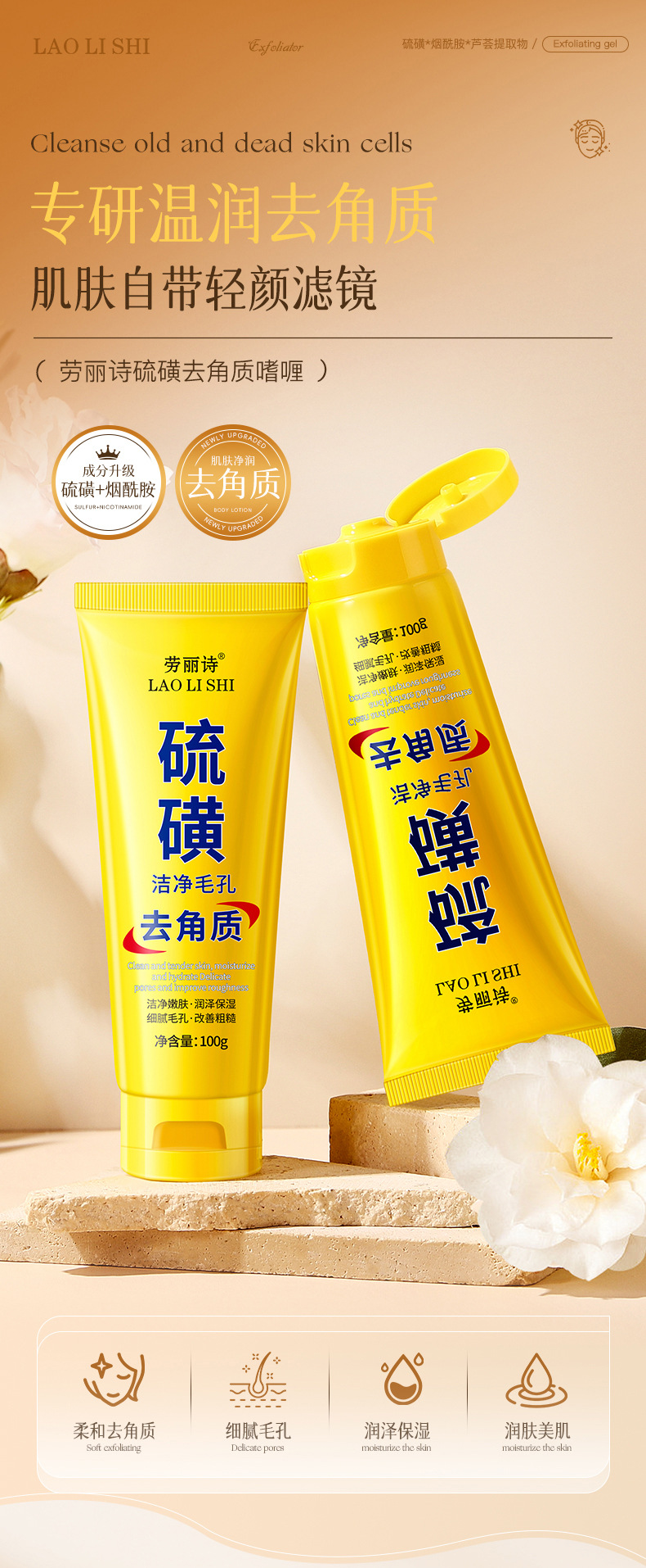 Гель для отшелушивания с серой Lauris, удаляет кожу куриного типа, омолаживает, увлажняет, глубоко очищает без стягивания, улучшает тусклость