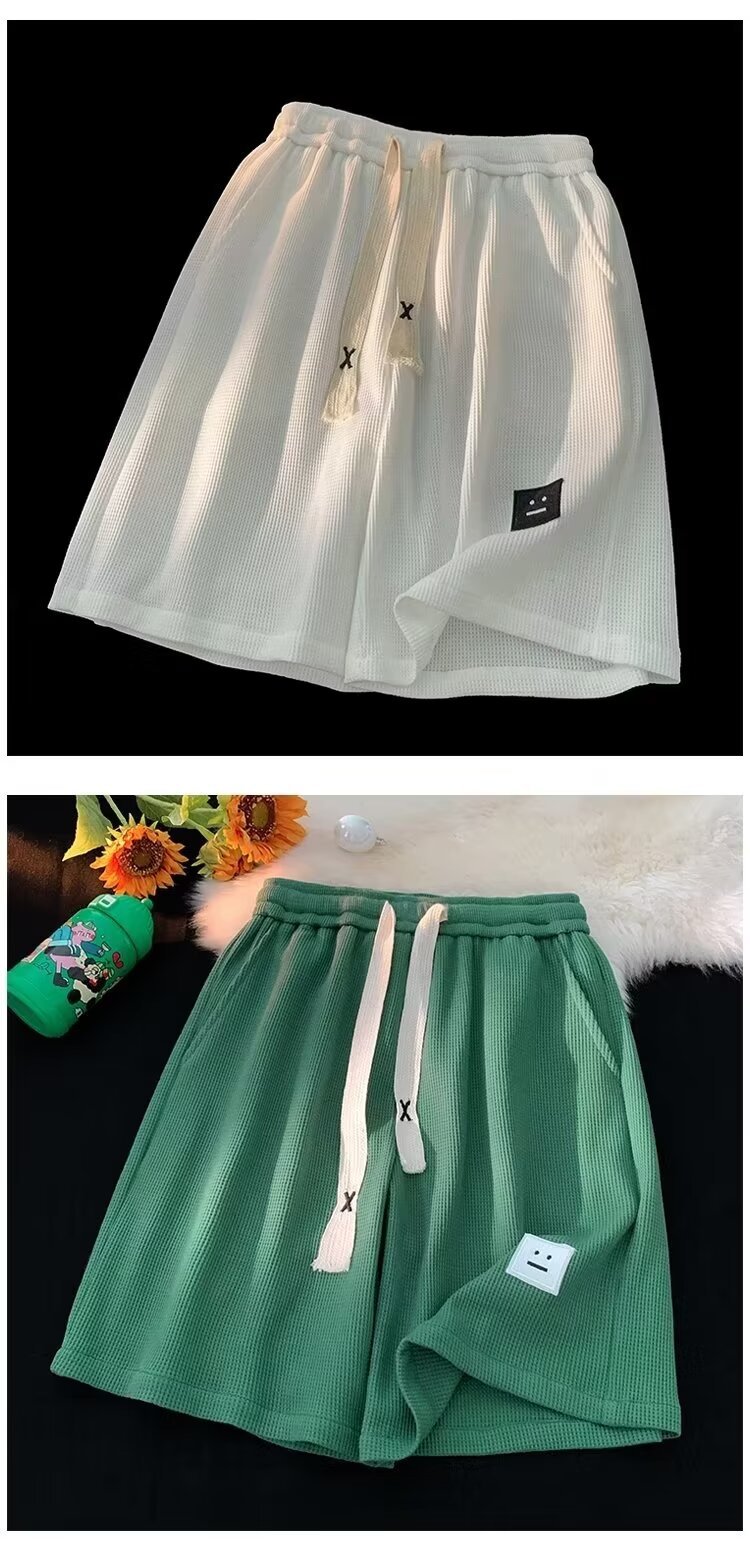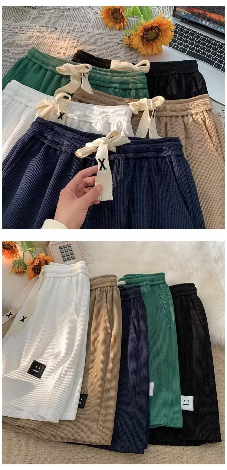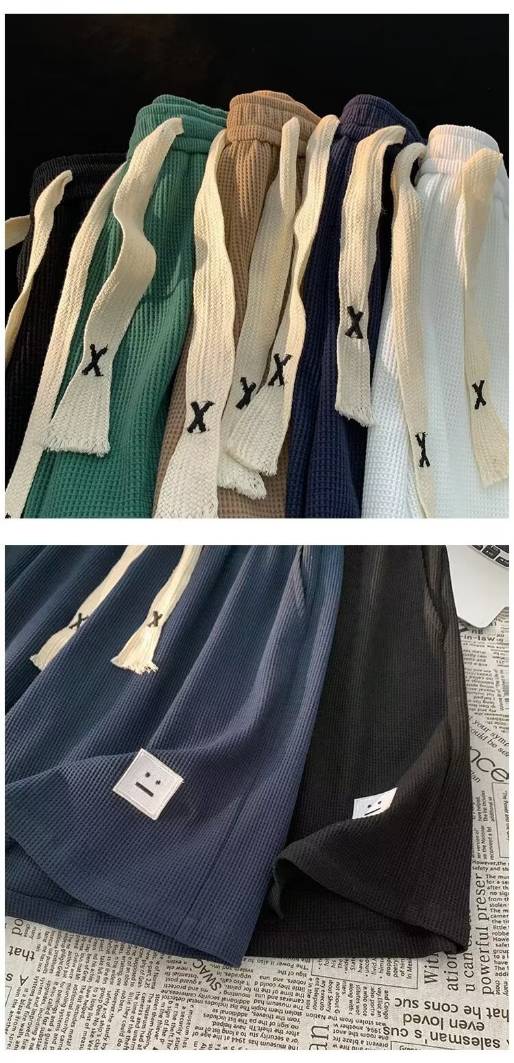 кросс-граница вафельные шорты мужские летние легкие пляжные брюки беговые спортивные брюки свободные повседневные пятибалльные брюки для мужчин