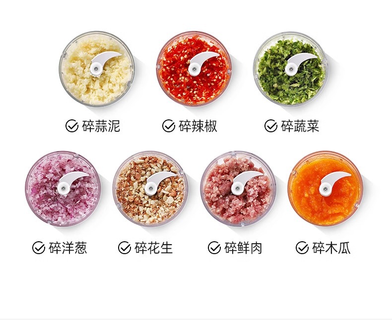 Функция Shred and slice, Minced meat enema, Beat egg liquid, Quickly peel garlic