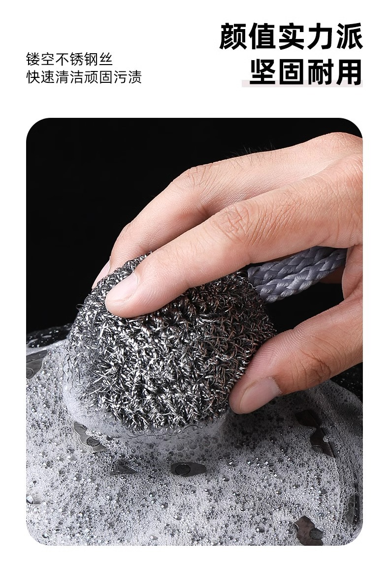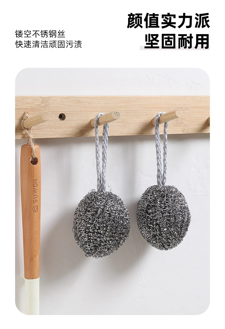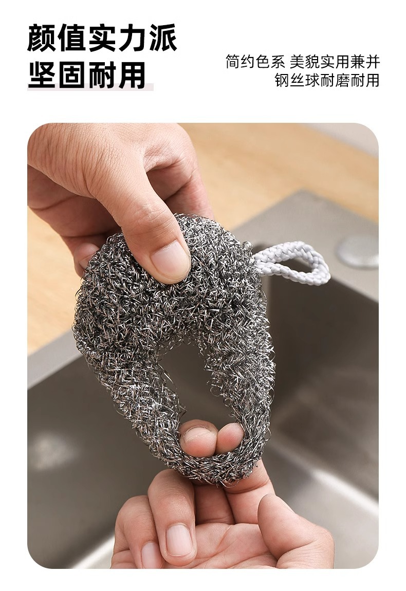 Шарик из стальной проволоки с встроенным шнурком, не ржавеющий, для кухни, для мытья кастрюль и посуды