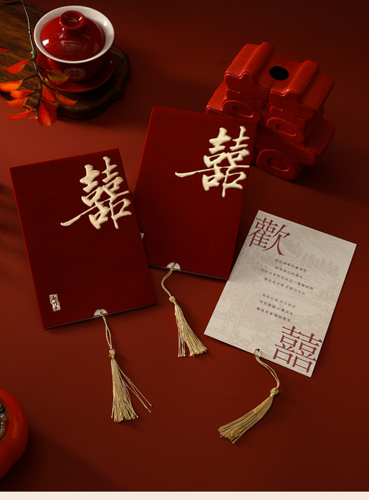 Свадебное приглашение из бархатной ткани, бордового цвета, классическое приглашение с кисточкой