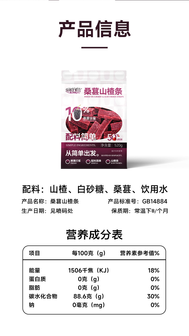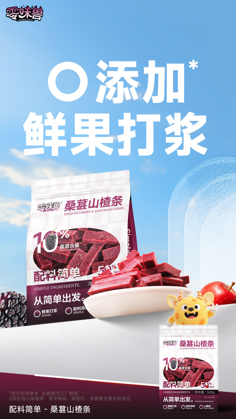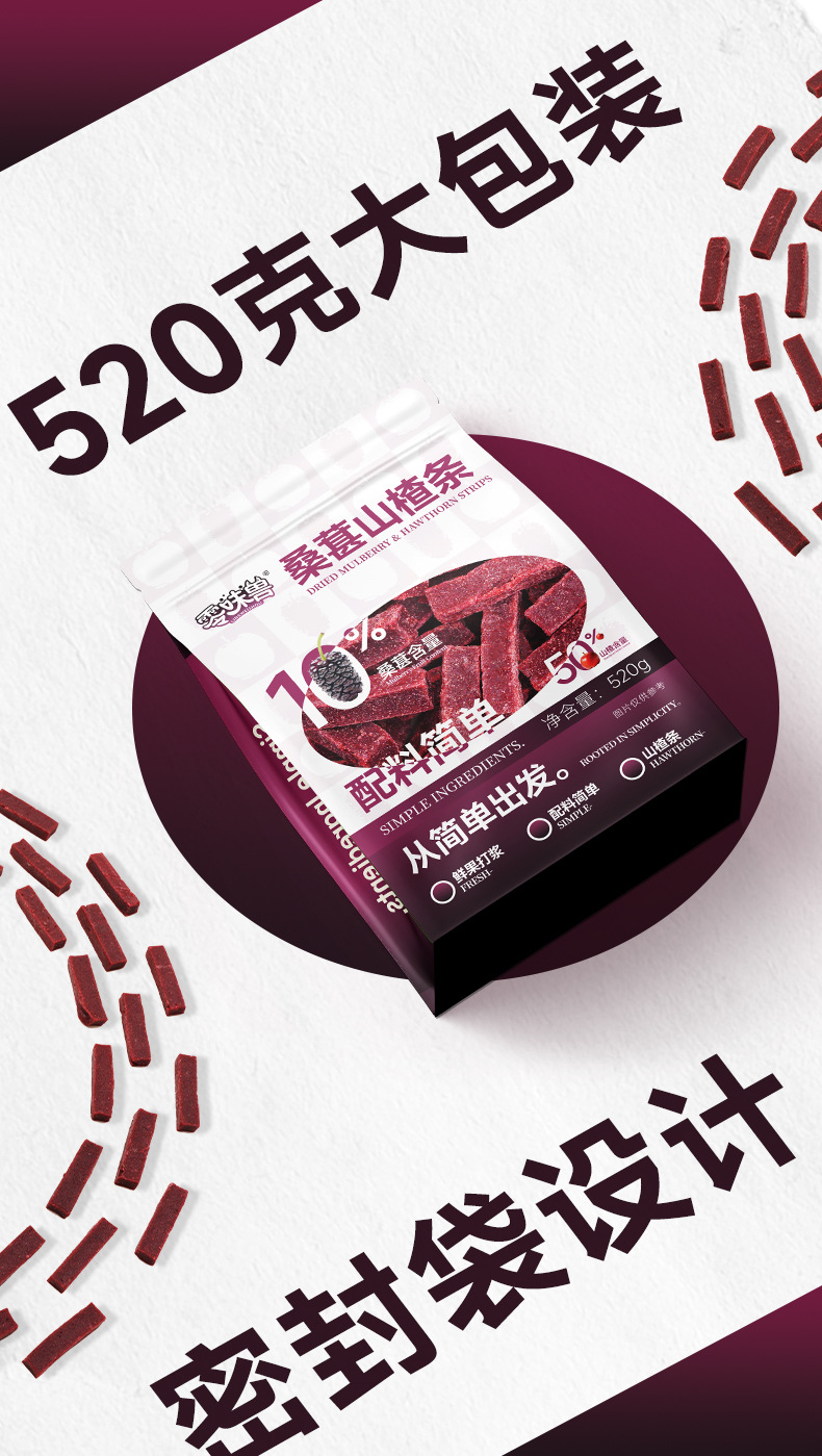 Мулберри и боярышник без вкуса 520г Сушеные ломтики боярышника Конфетная сладко-кислая закуска Офисные перекусы
