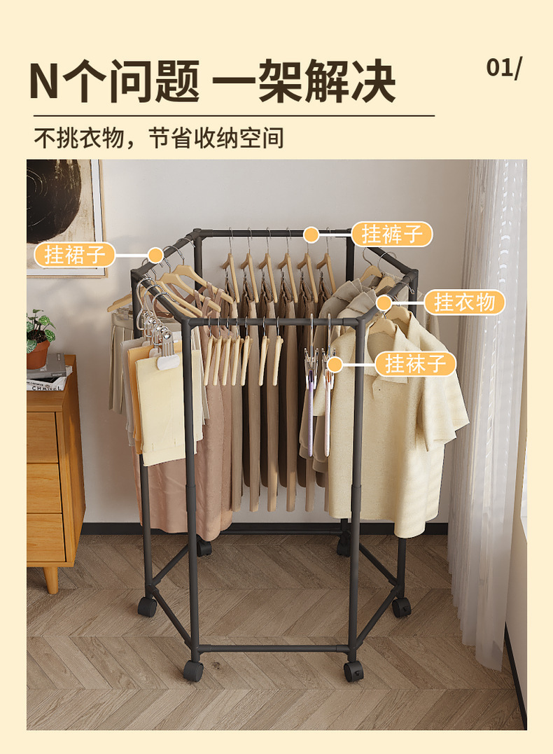 Шестигранная вешалка для сушки одежды для балкона