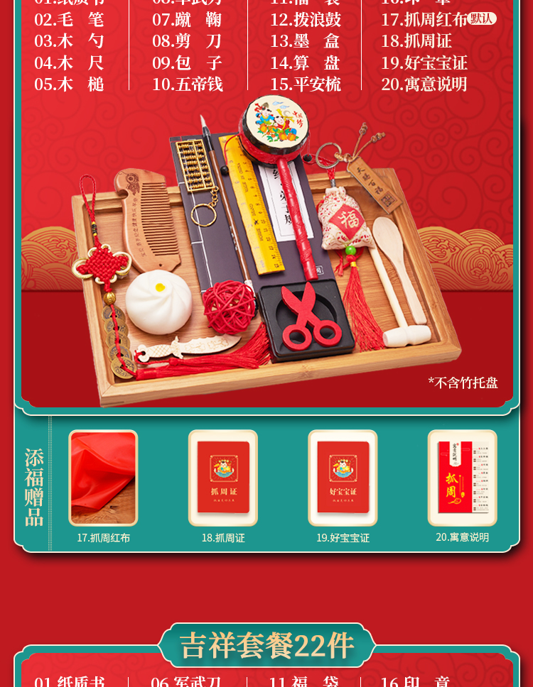 ![]() | Qizhi gong, 22 pieces of zhou zhou + long bao balloon + hand and footprints | ¥89.04 / ≈ 1 083 ₽ | 200 | 5829511657487 | |