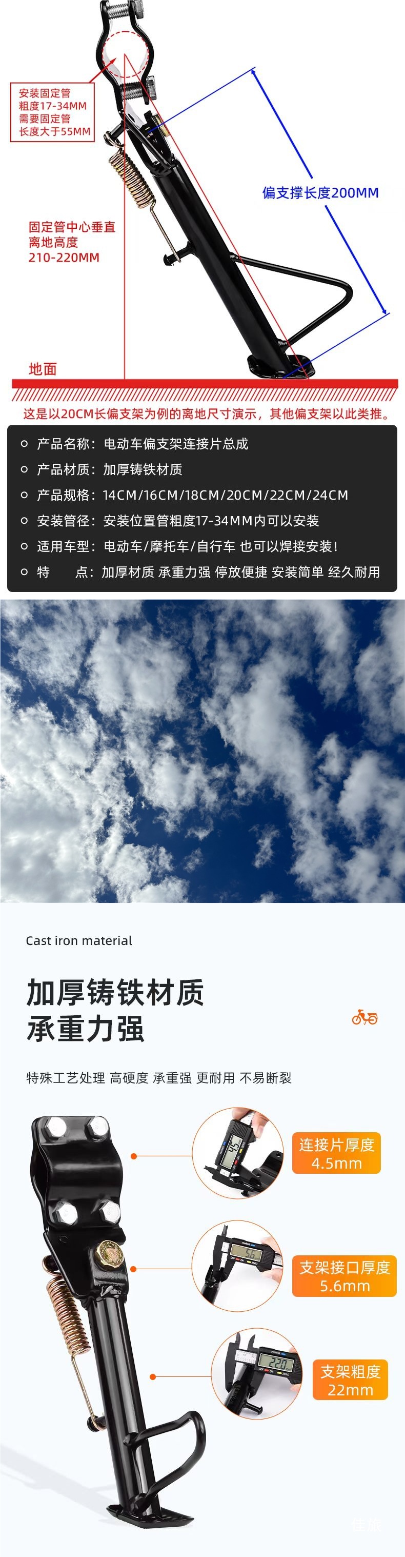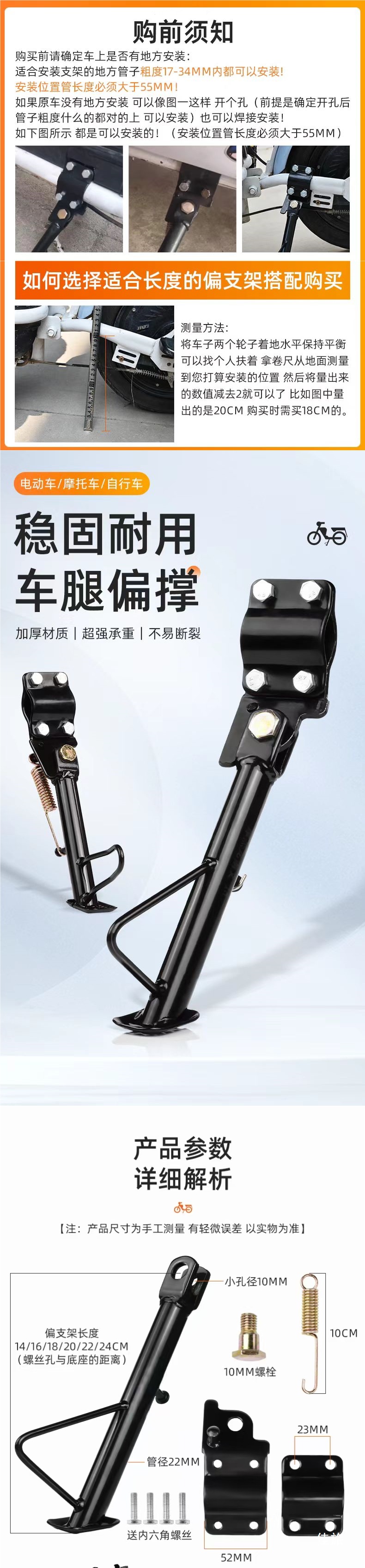 Электрический мотоцикл с противоскользящей боковой поддержкой, модификация батарейного автомобиля с наклонной подставкой, односторонняя боковая поддержка