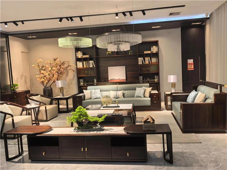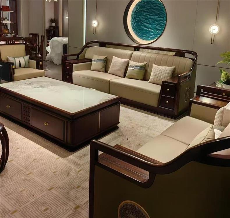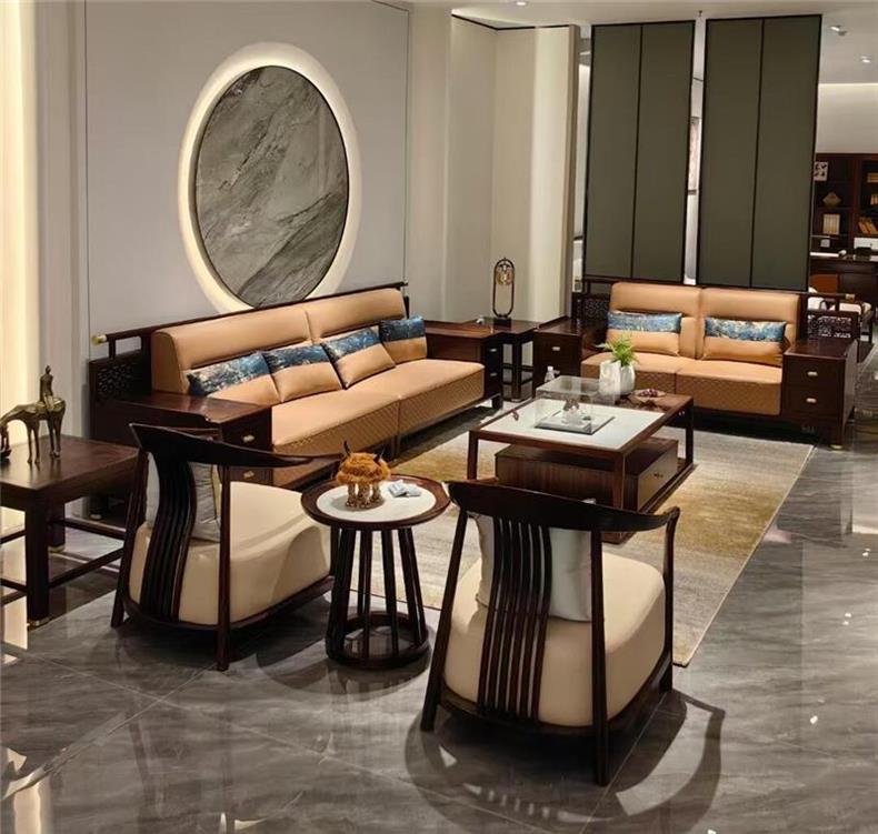 Полный комплект нового китайского стиля виллы, клубный дом, роскошная, высококачественная большая спальня, массивный деревянный диван, черное дерево, современный простой