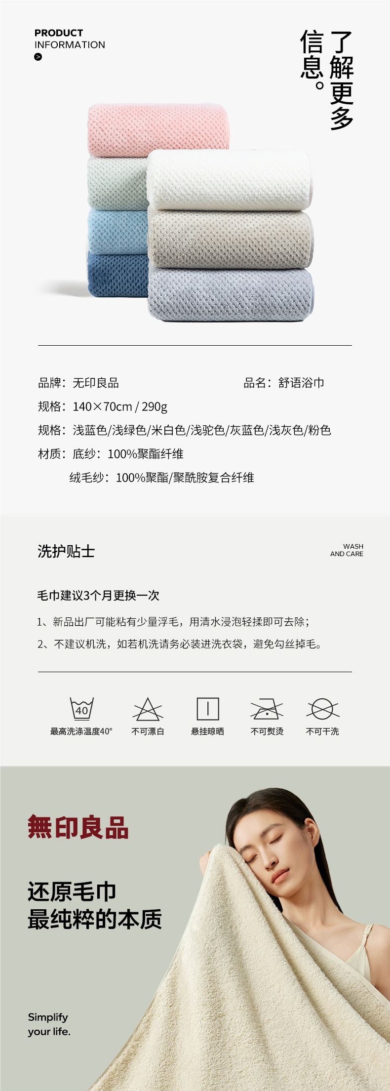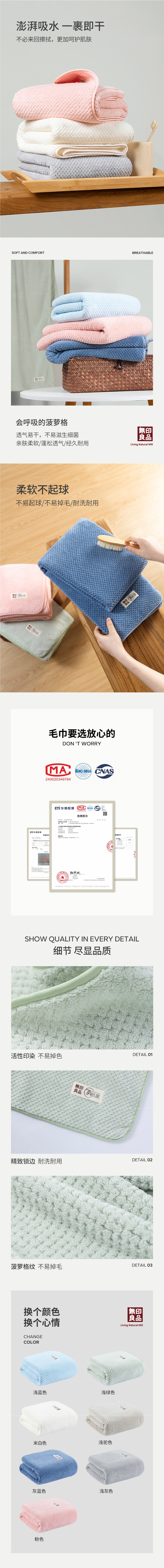 Полотенце для ванной Muji для мужчин и женщин, мягкое и впитывающее, без ворса
