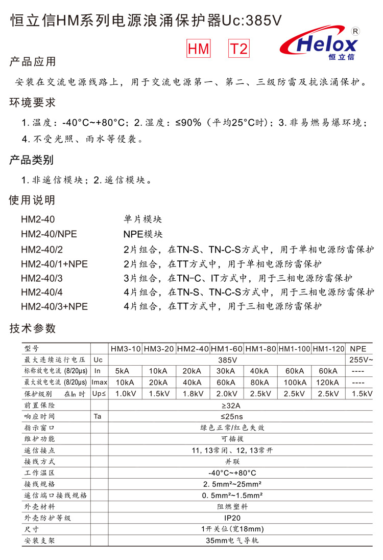 Молниеотвод Henglixin трехуровневого питания 220V 20Ka D-уровень молниеотвод защиты от перенапряжений Hm3-20