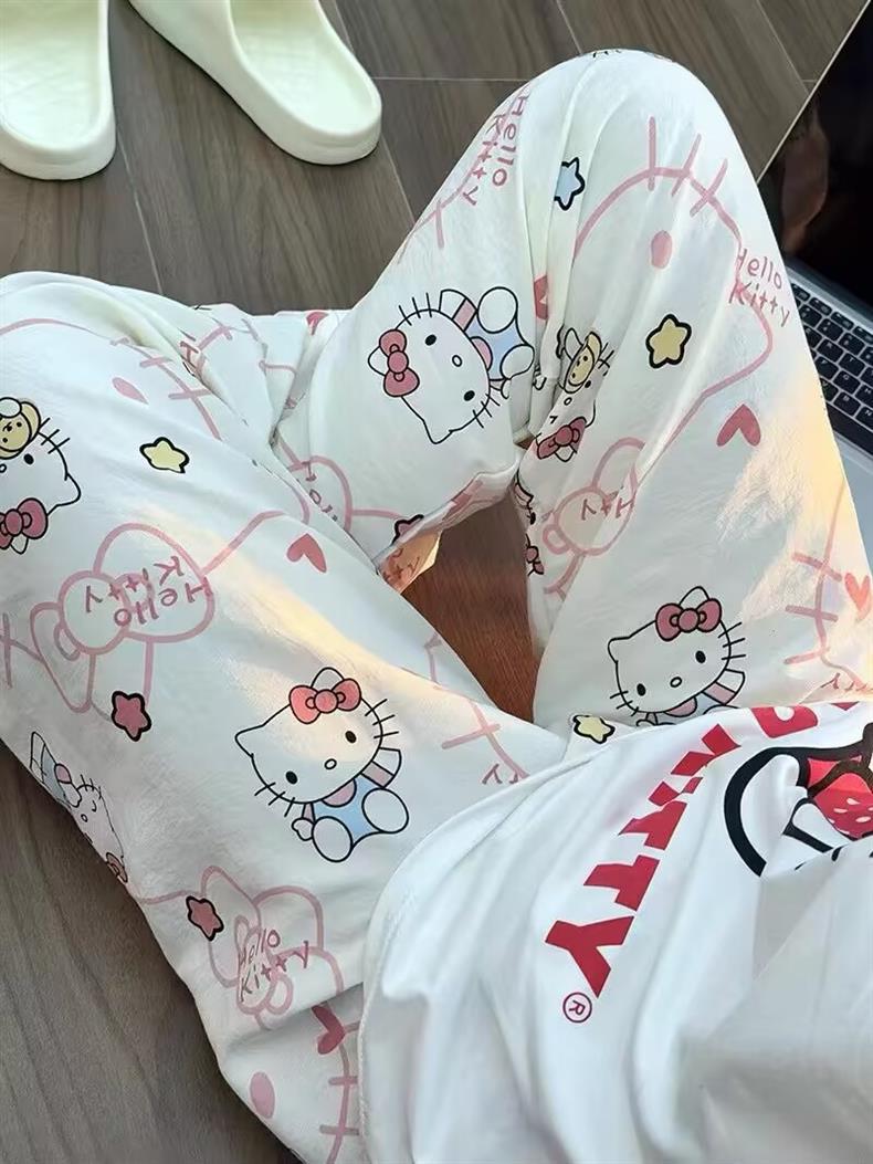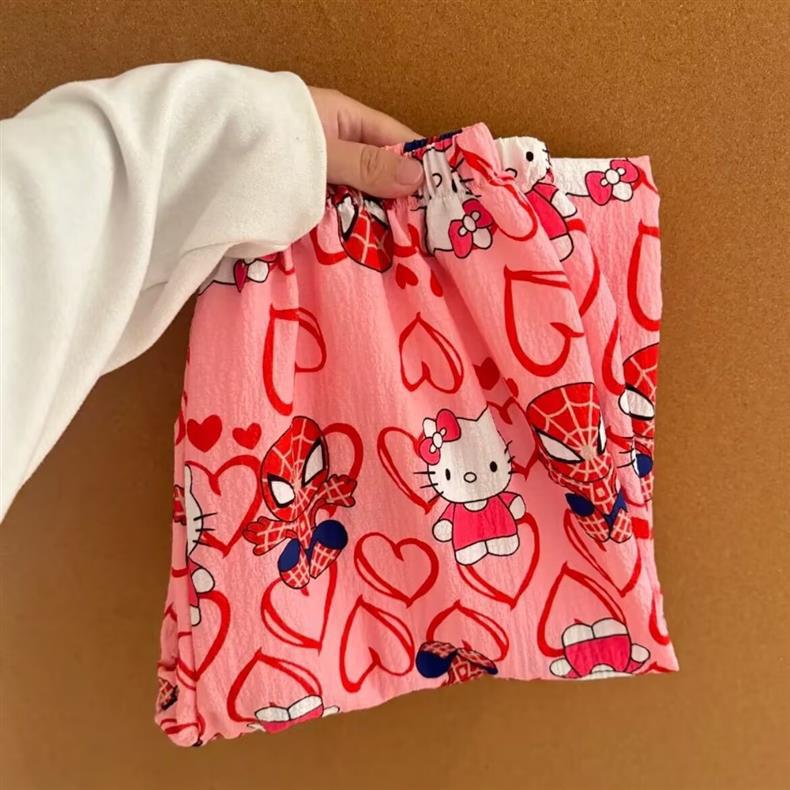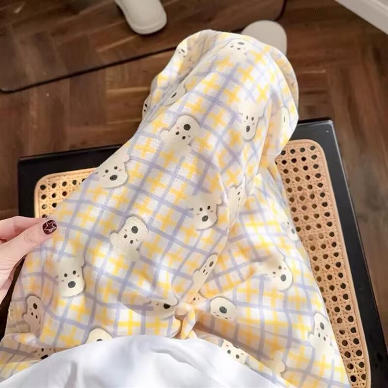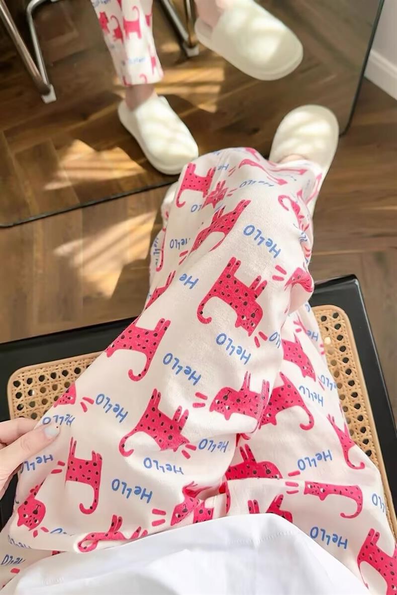 Юго-Восточная Азия 2025 Новые облачные хлопковые мультяшные пижамы для студентов Женские летние милые повседневные брюки можно носить на улице