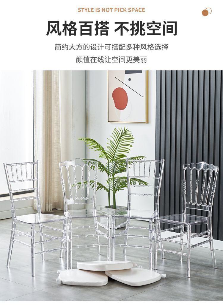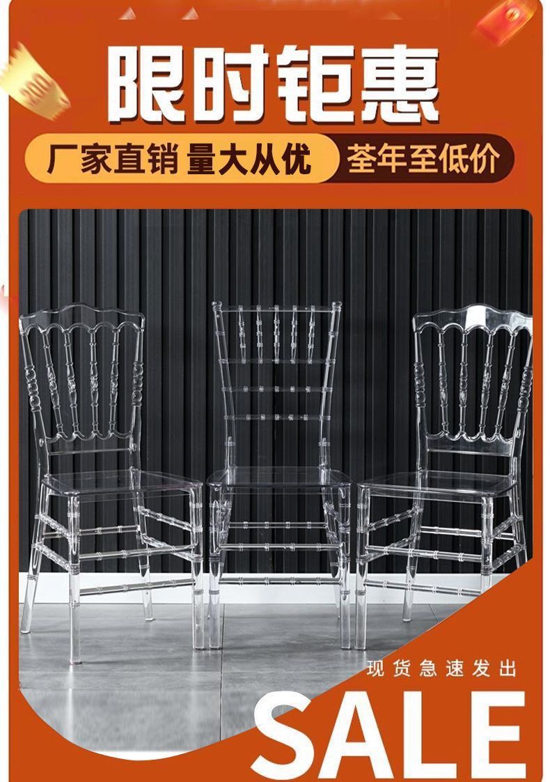 Прозрачный акриловый кристаллический стул Для банкетного зала отеля Свадебный зал Уличное мероприятие Пластиковый стул Наполеон Солнечный стул