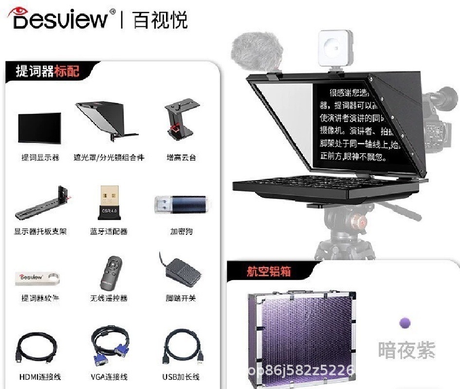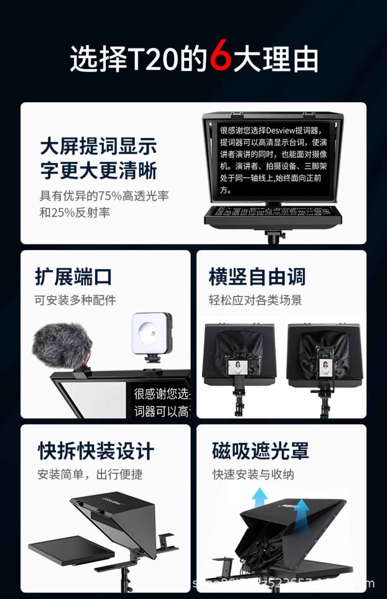 Телесуфлер Baisiyue T20 с большим экраном 20 дюймов, ультрачеткий, складной, для прямых трансляций, широкий угол, для камеры SLR, ТВ