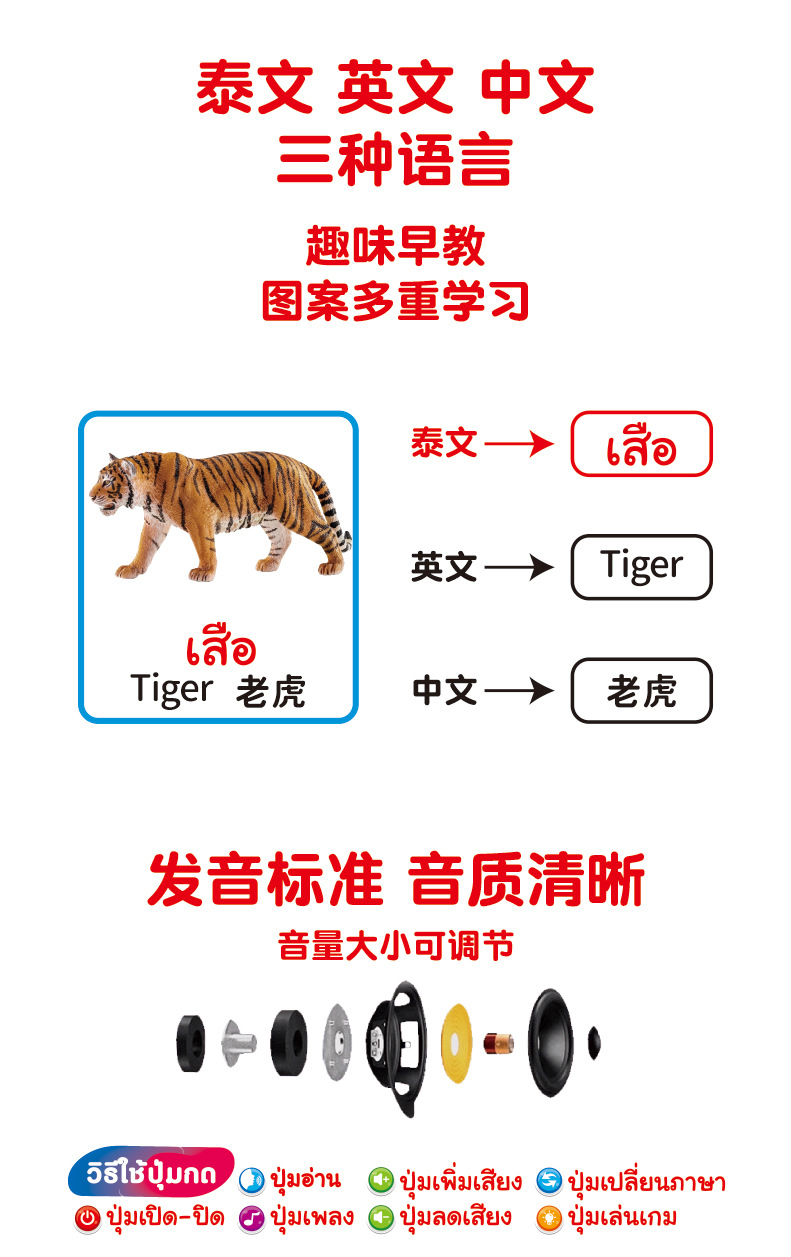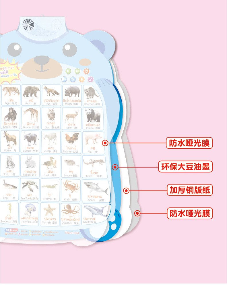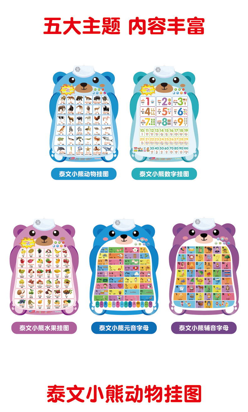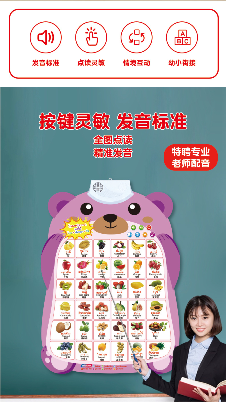 Аудио настенный плакат Синхронное обучение на китайском, английском и тайском языках Тайский Раннее обучение Звуковая игрушка для чтения