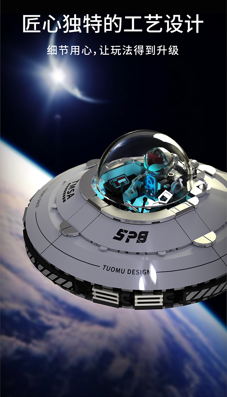 Tuo Mu T3012 НЛО Космический корабль Образовательные Строительные блоки высокой сложности Сборка Кросс-граничная модель Украшение игрушка
