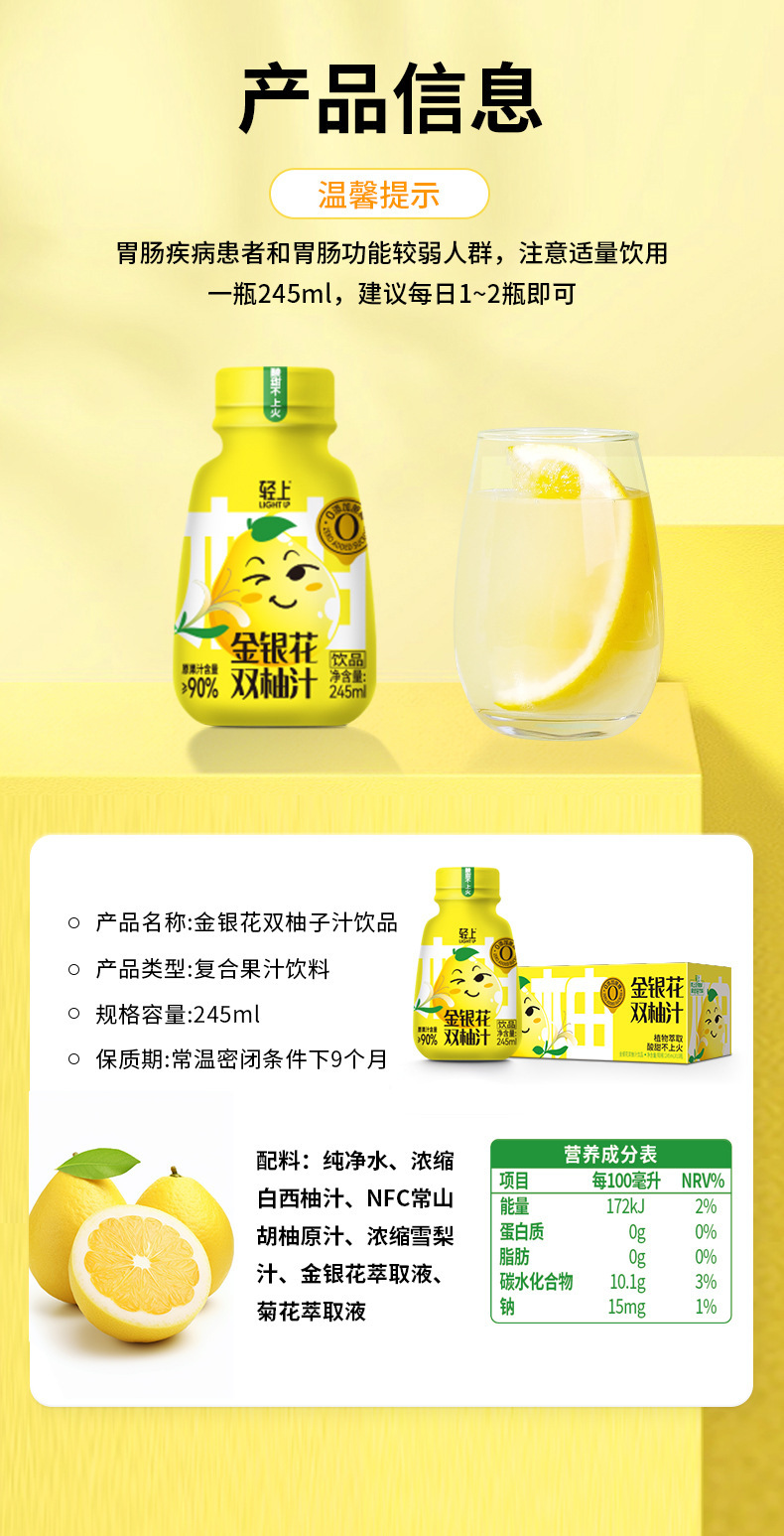 ![]() | 245 light honeysuckle double pomelo juice (festive edition 1*10) | ¥29.9 / ≈ 364 ₽ | 0 | 6042767146224 | |