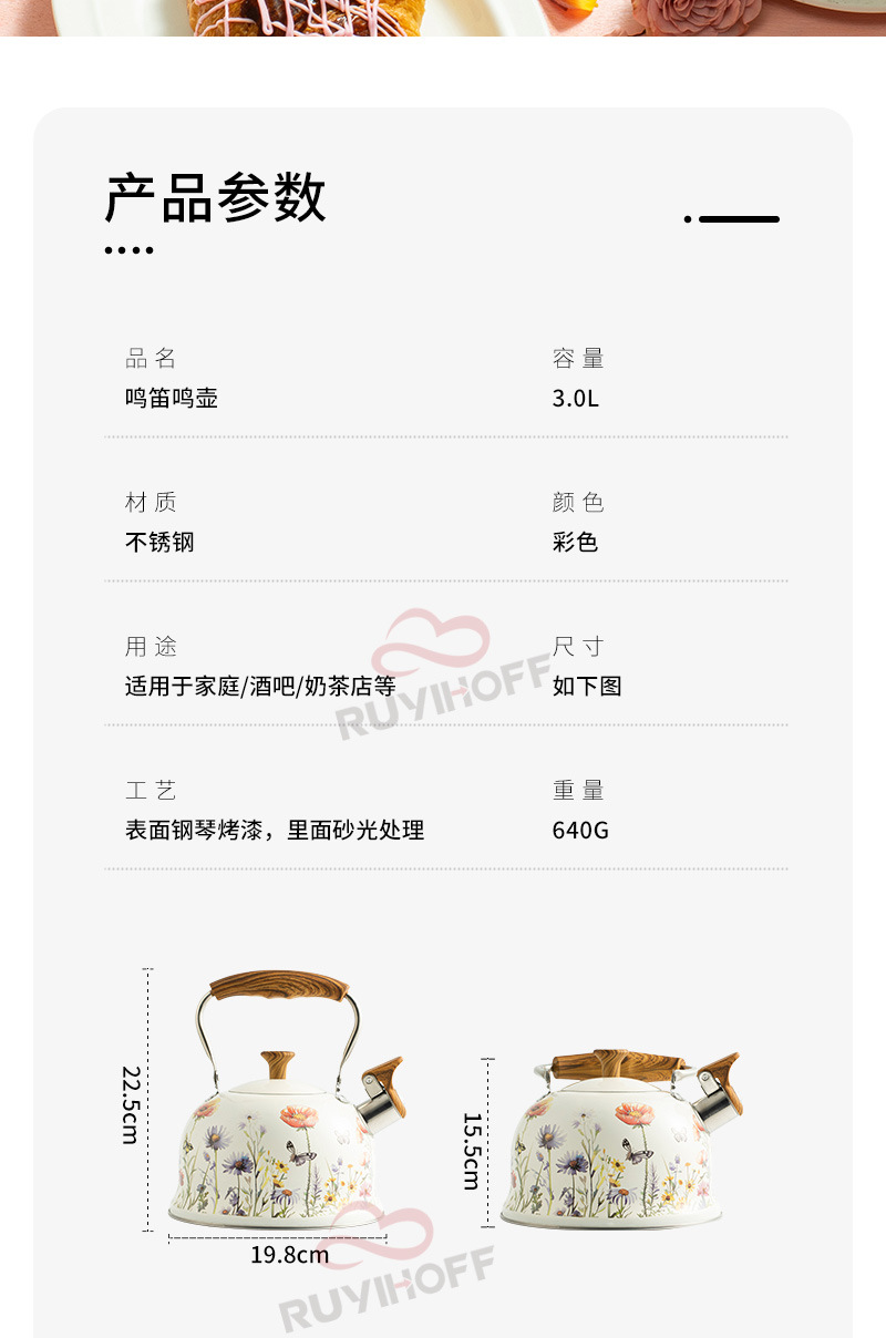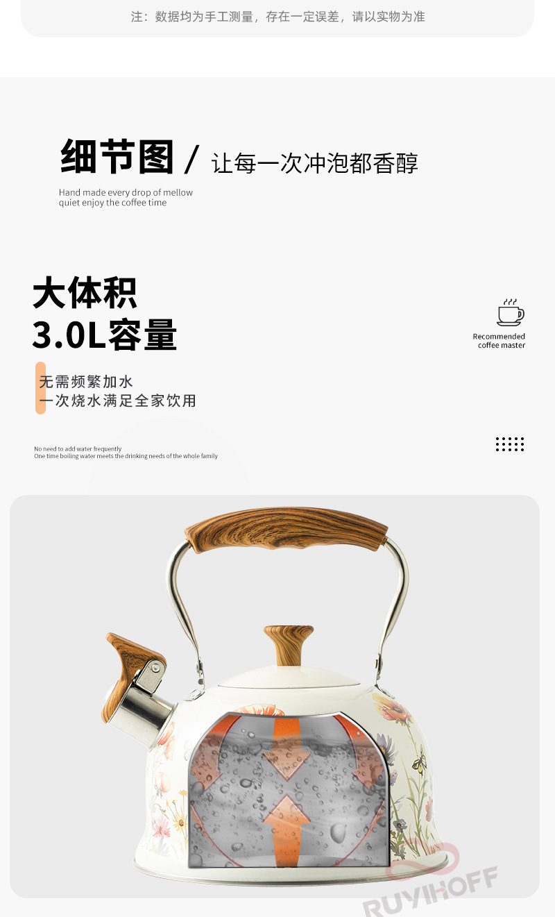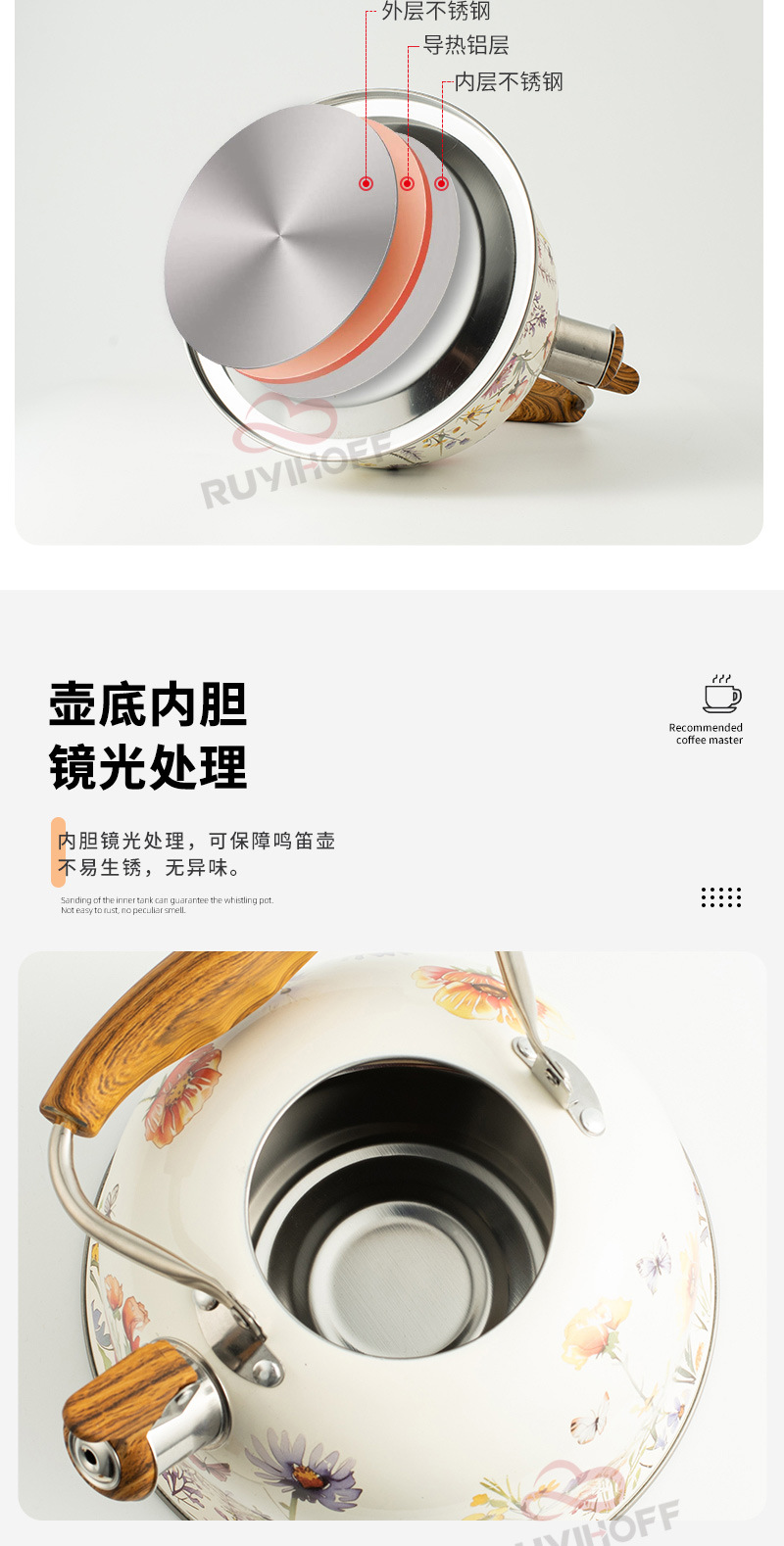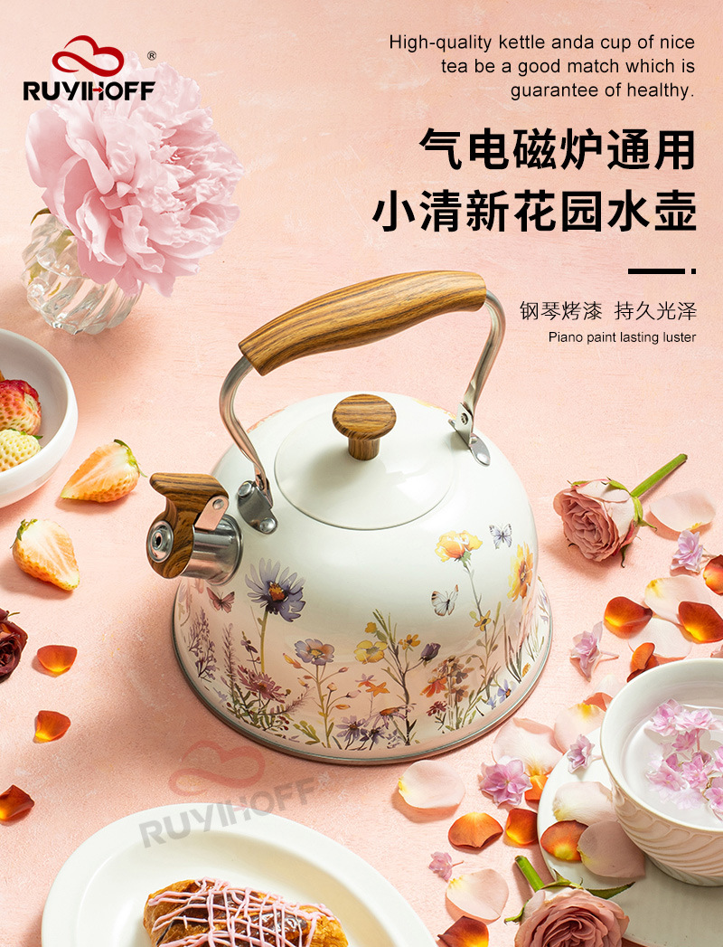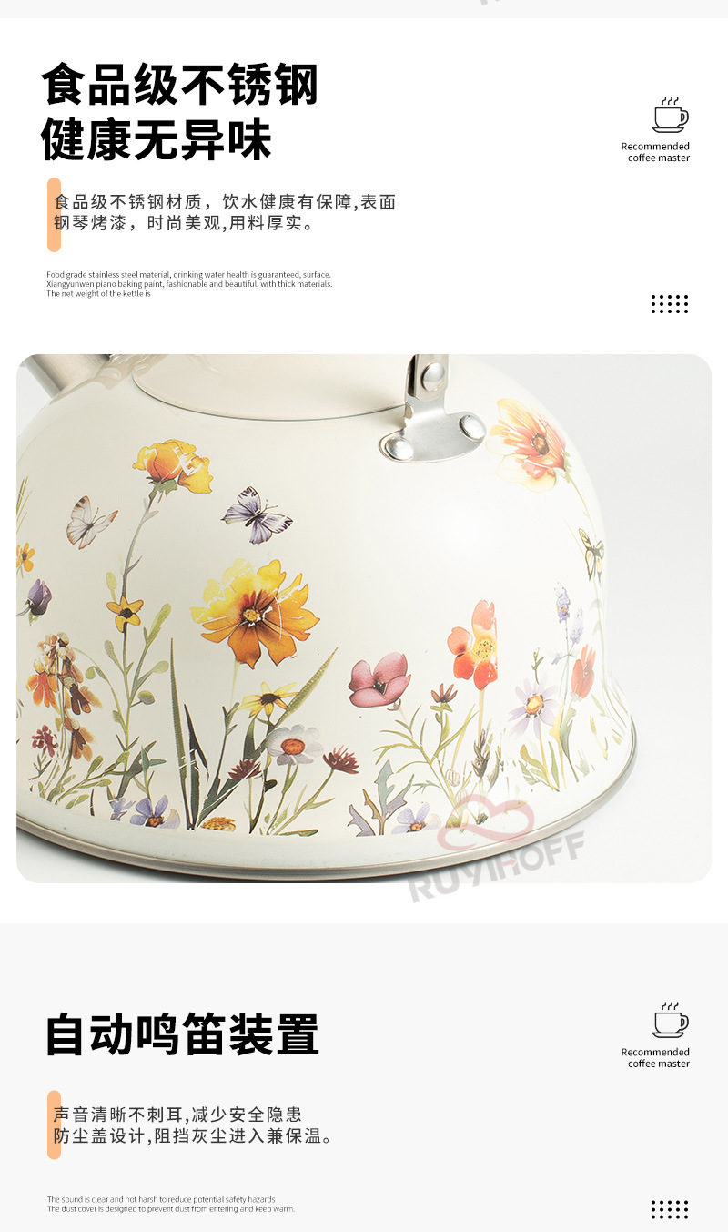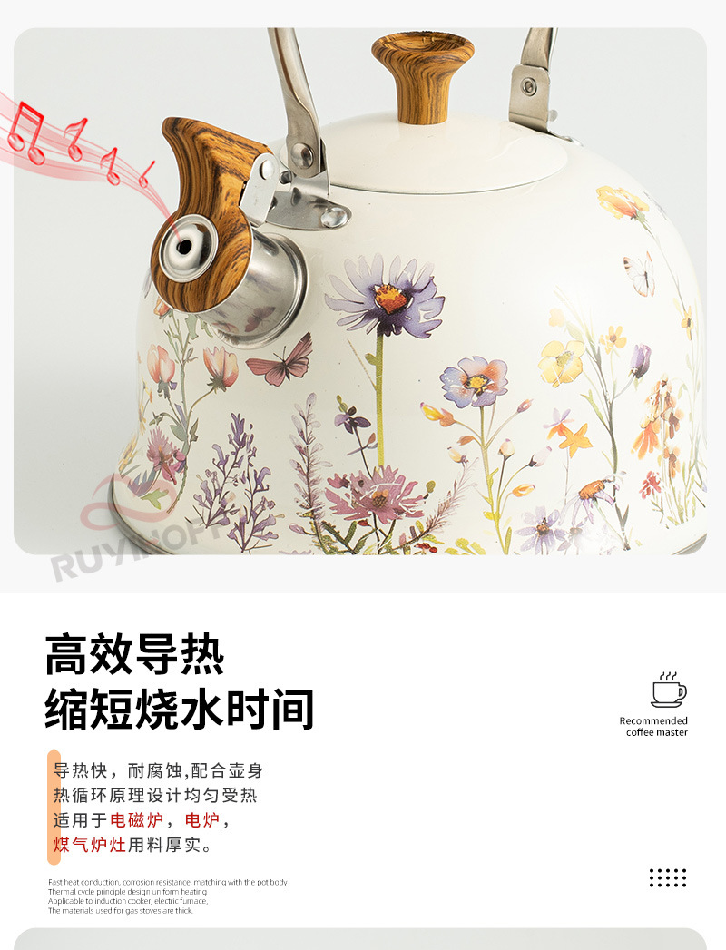 Креативный свистящий чайник в европейском стиле 3L, новый цветочный свистящий чайник