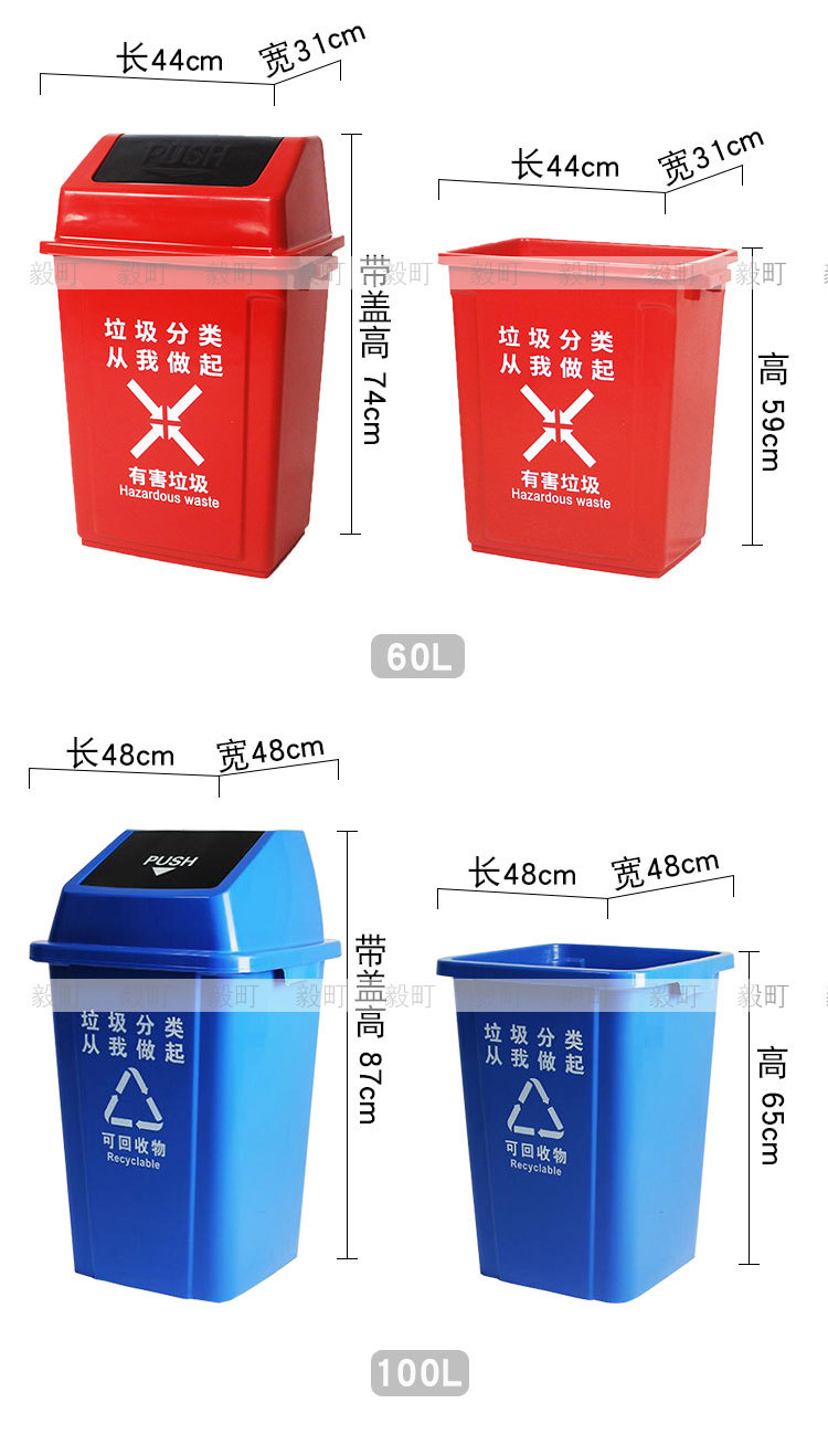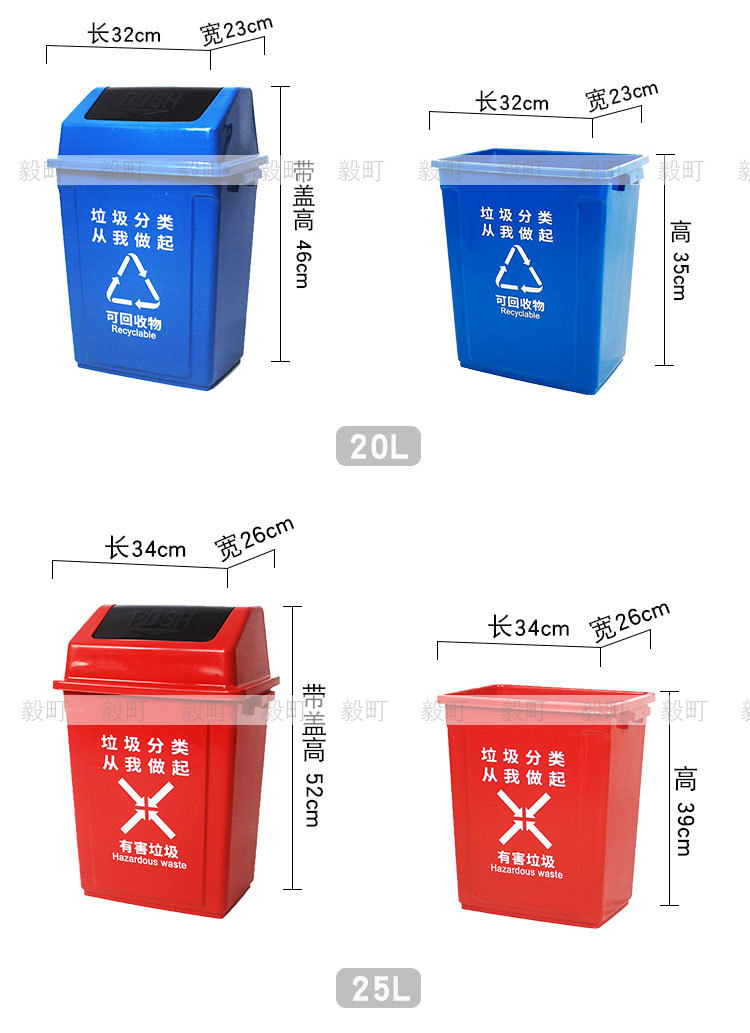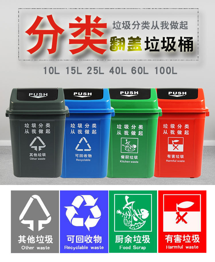 Пластиковое мусорное ведро для сортировки с крышкой для дома, школы, офиса