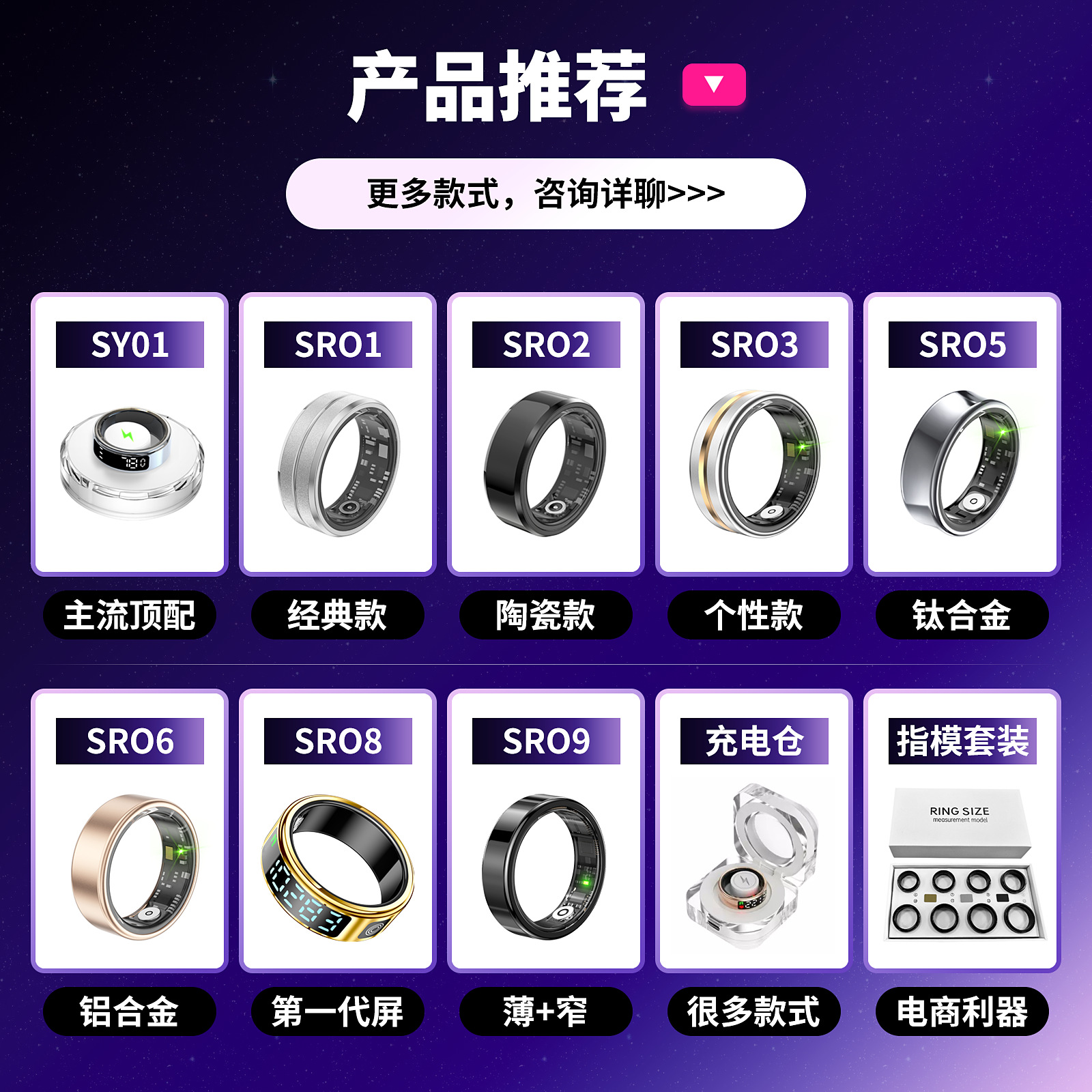 30+款式,智能戒指可选择材质有 不锈钢、铝合金、陶瓷、钛合金、黄金、越南沙金、镶钻、碳纤维
