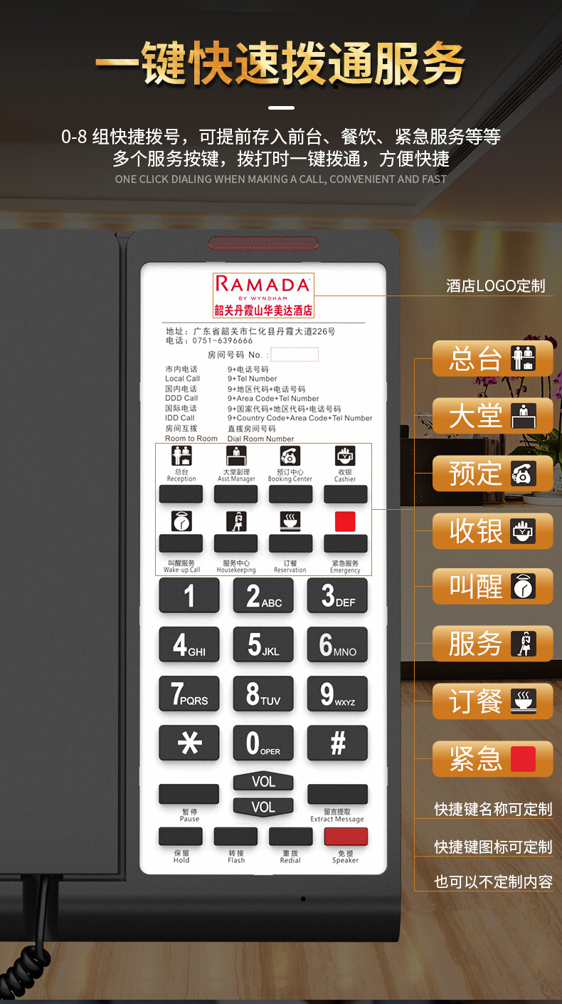 Lingda телефон для гостиничного номера специальный телефон с одним нажатием для ресепшн стационарный телефон для гостиницы и гостевых домов