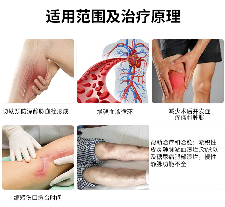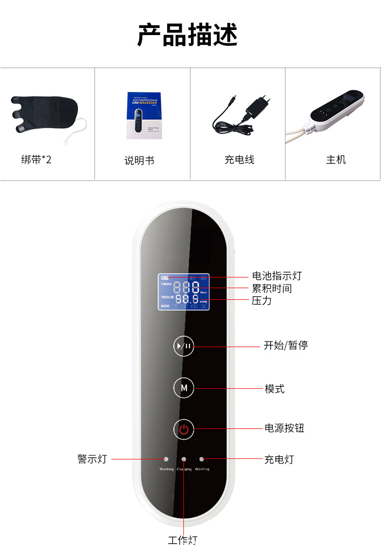 目的是通过帮助刺激腿部的血液循环来预防深静脉血栓(DVT)。这是通过一个电子控制的泵实现的,该泵向腿部护套输送一定量的空气,从而压缩小腿肌肉以促进下肢的血液回流。当压力达到预设的55毫米汞柱时,泵会为每个腿部护套充气并随后放气。这一过程会在每个单元上重复进行,直到电源关闭。内部可充电电池使该设备完全便携,从而防止治疗过程中出现中断。该设备可以在家庭或临床环境中使用,通过刺激四肢的血液循环(模拟肌肉收缩)来帮助预防患者发生DVT。
