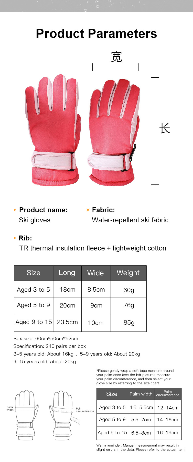 Кросс-бордерные лыжные перчатки для детей от 3 до 9 лет, зимние, утолщенные и плюшевые, ветронепроницаемые и теплые, для активного отдыха для мужчин и женщин