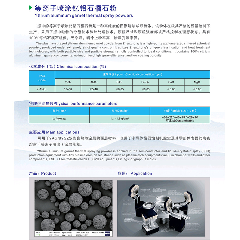 Порошок из иттрия алюминиевого граната для плазменного распыления улучшает коррозионную стойкость и стойкость к травлению распыляемого материала