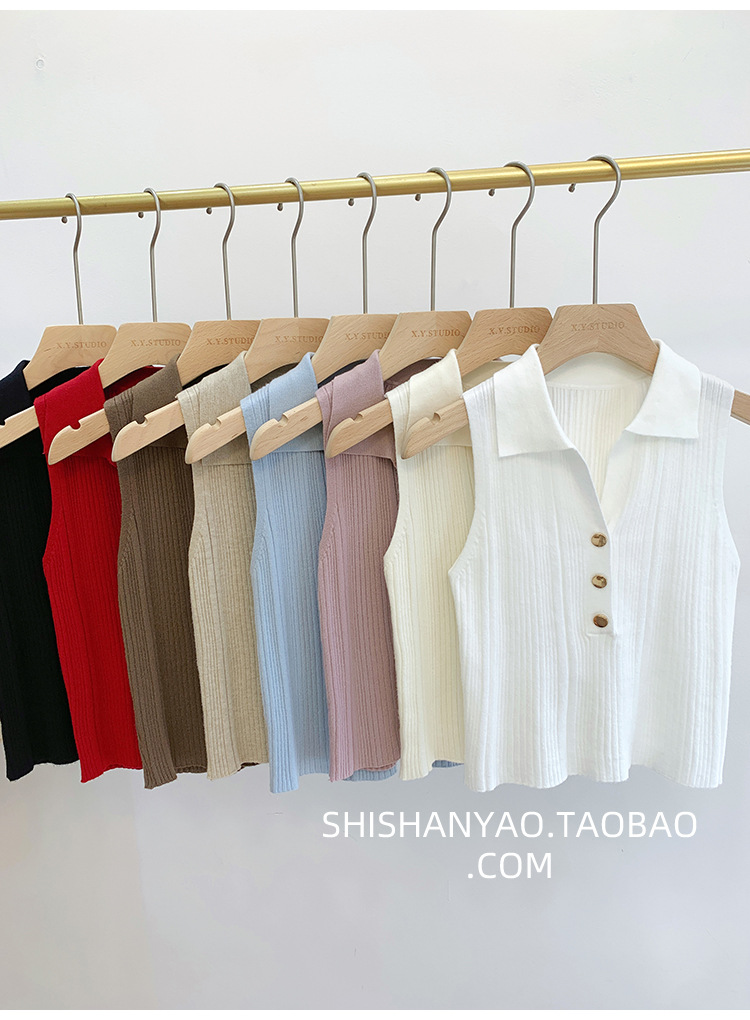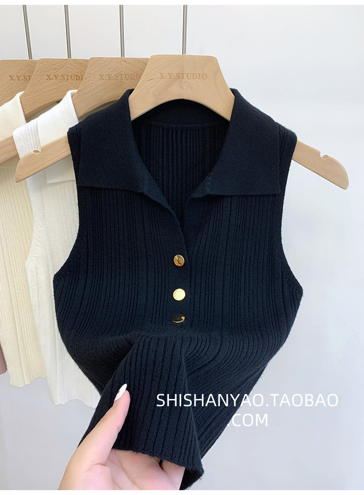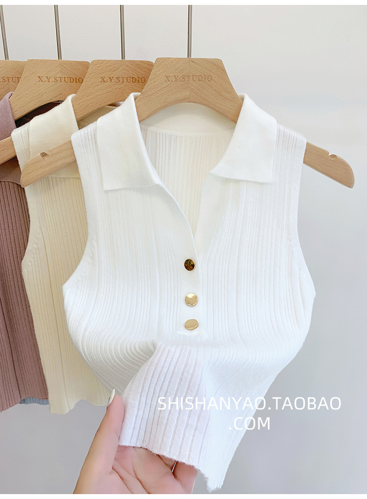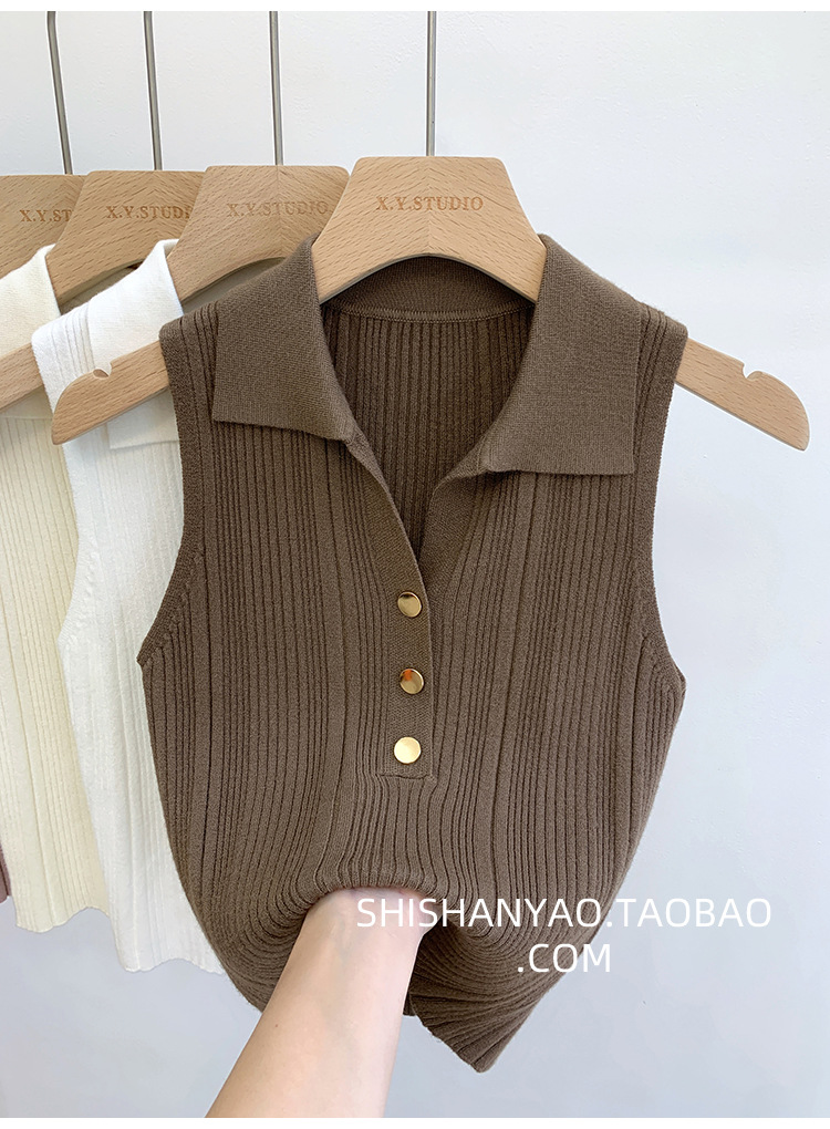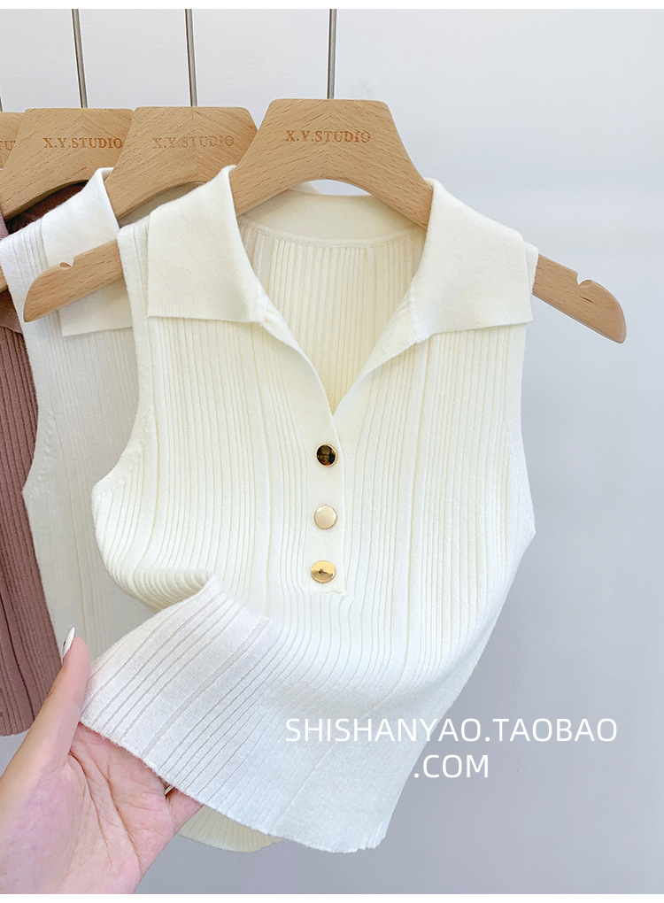 Топ из льняного шелка с воротником для лета и осени, тонкая вязаная безрукавка для женщин, облегающий фасон