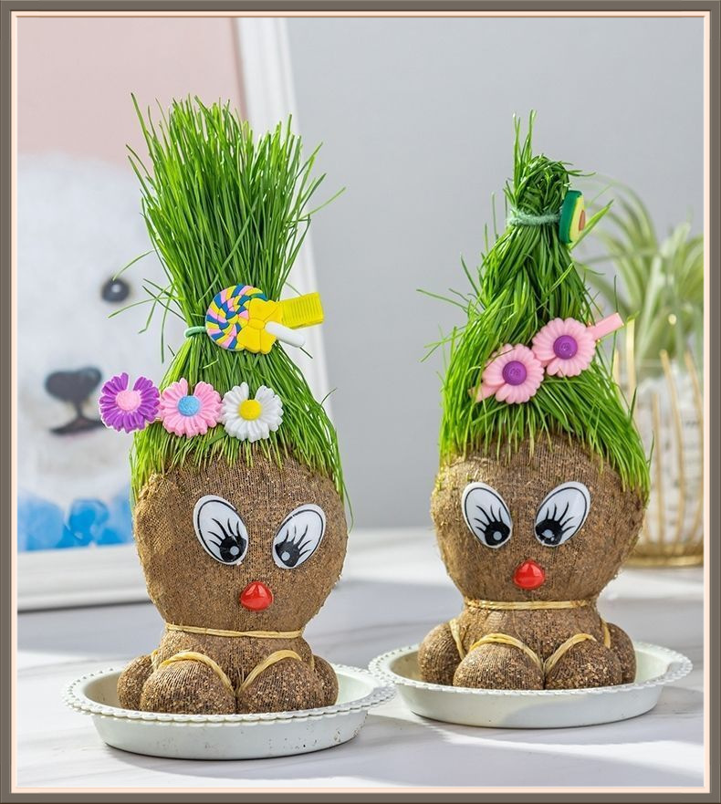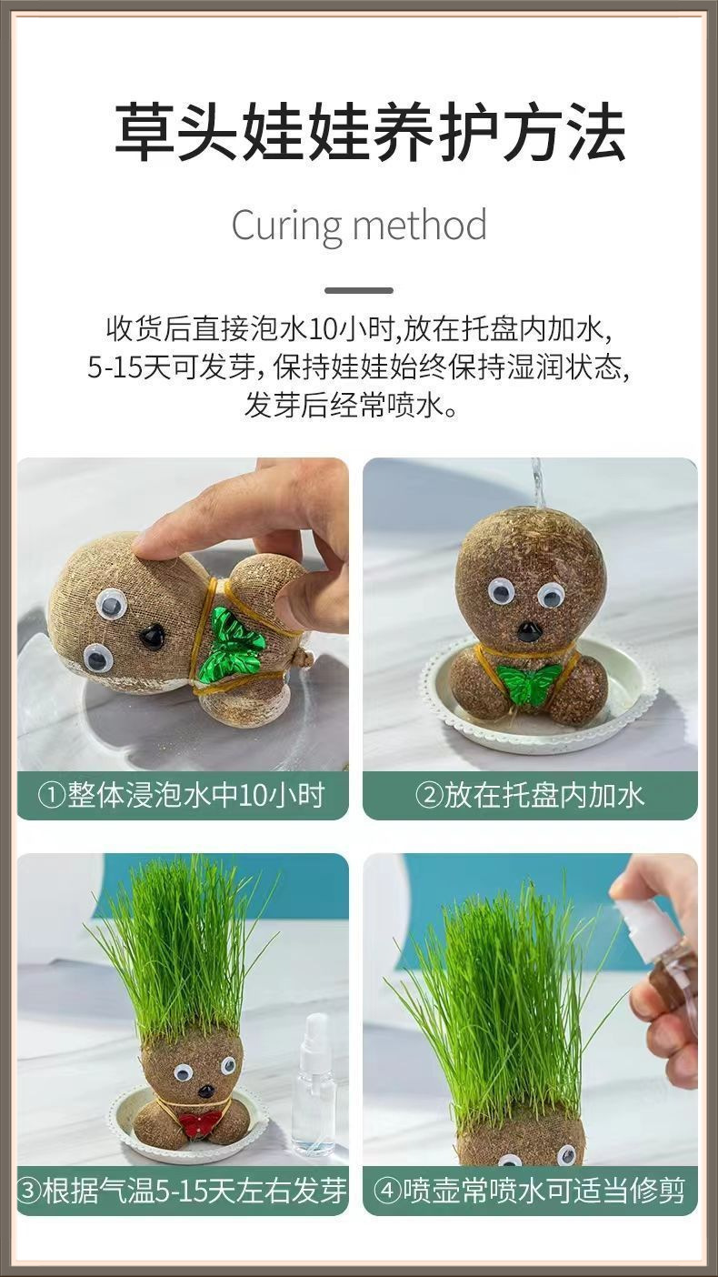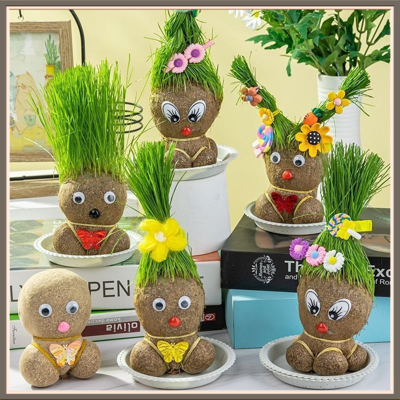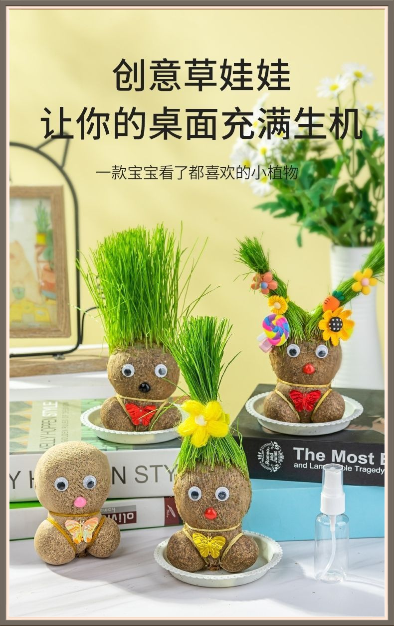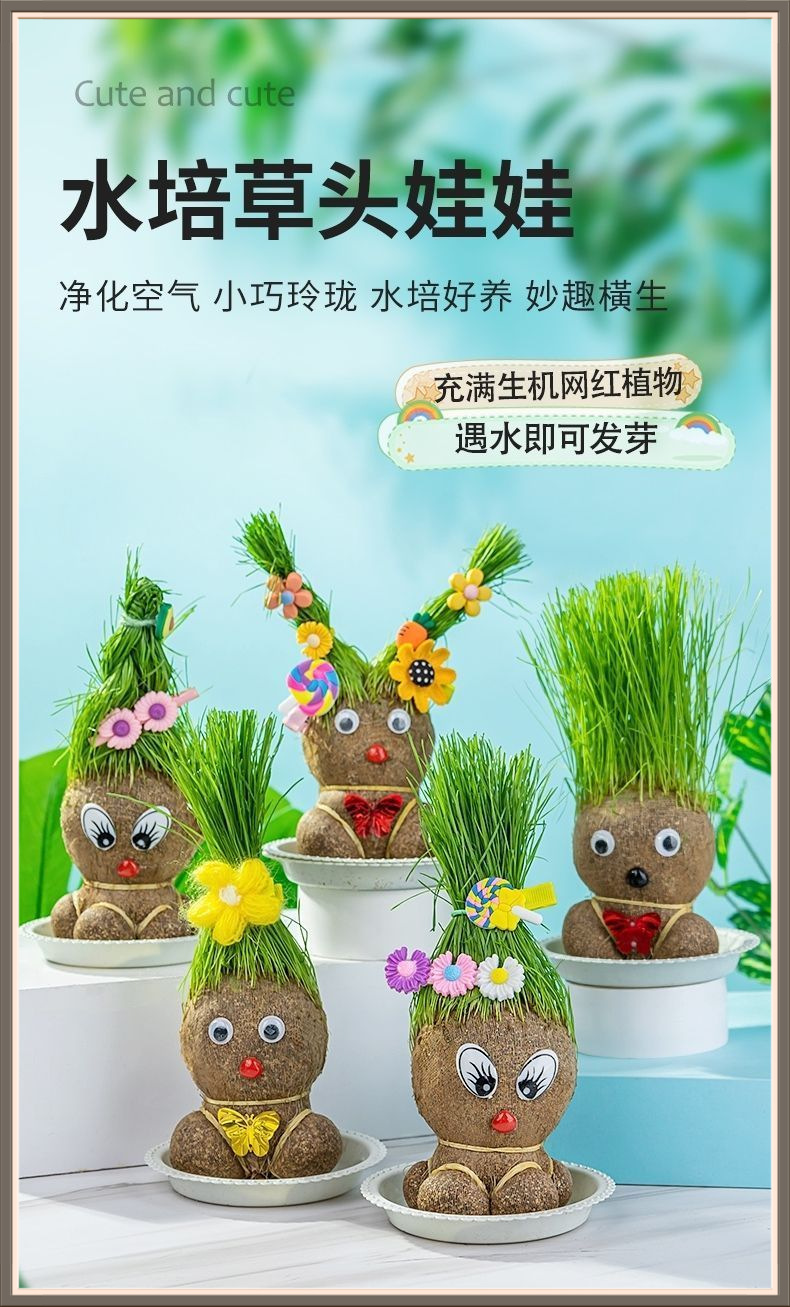 长娃娃头娃娃创意小盆栽桌面可爱植物趣味娃娃办公室儿童水培