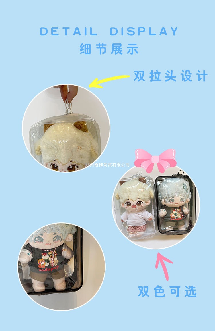 Детская сумка 20 см из хлопка, прозрачная, ручная работа, сумка для куклы, слепая коробка для выездов, пвх, пылезащитное хранение