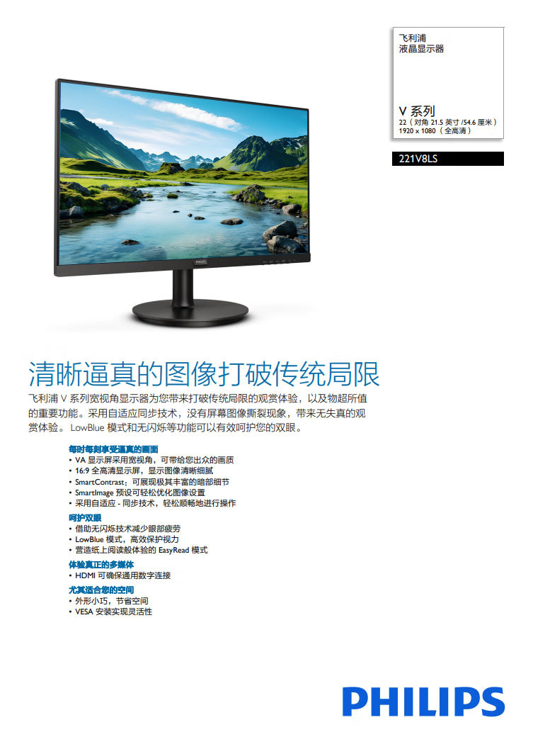 Fei/Philips Ph221V8 21.5 дюймовый IPS 75Hz микро-край дисплей VGA+HDMI игровой HD