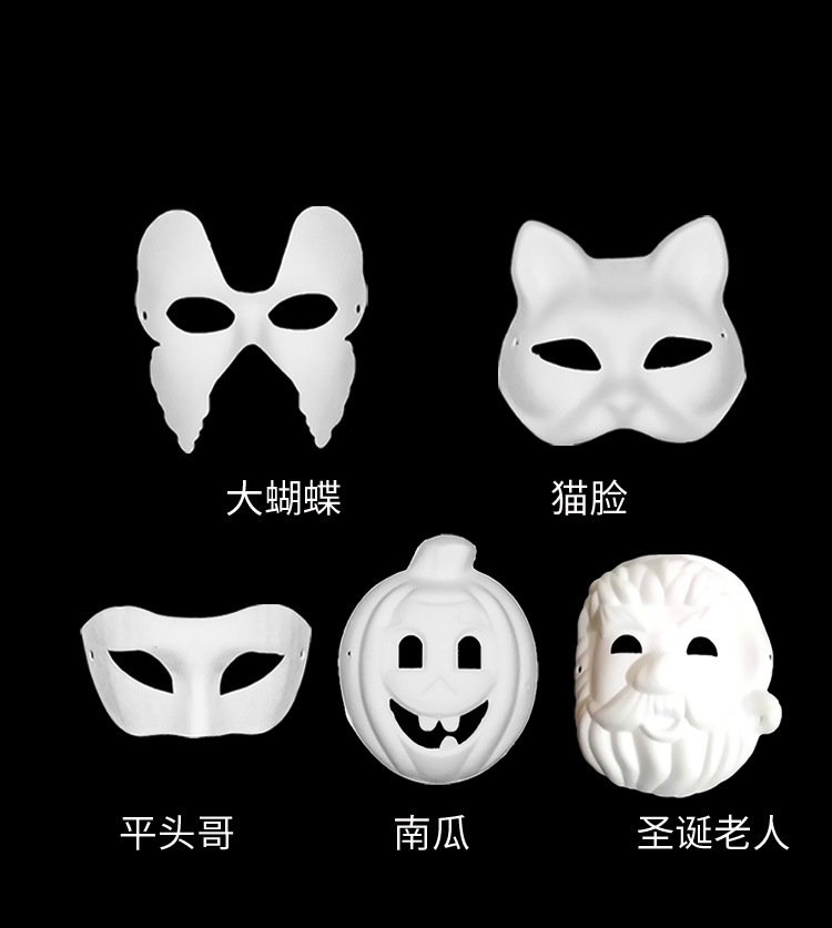 1、面具款式分:打孔(配绳子)、铆钉(机器钉绳)2个款式,具体请咨询客服~