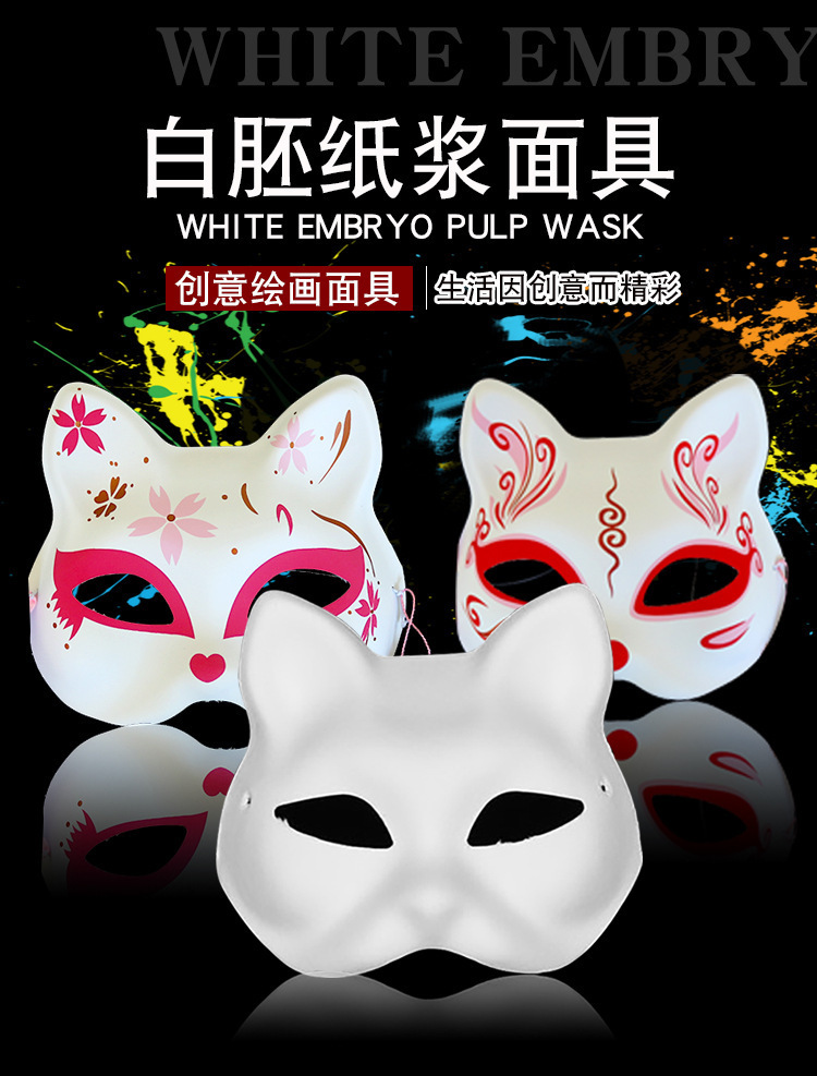 Маска ручной работы из бумаги на Хэллоуин, в виде кота, лисы, пустая, игрушка для мужчин и женщин