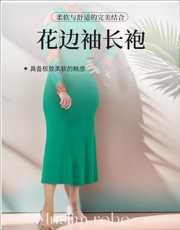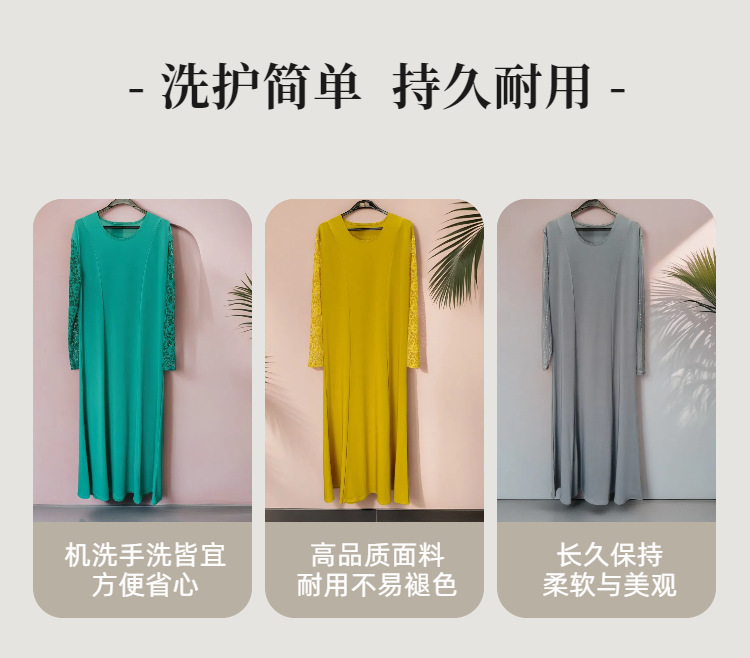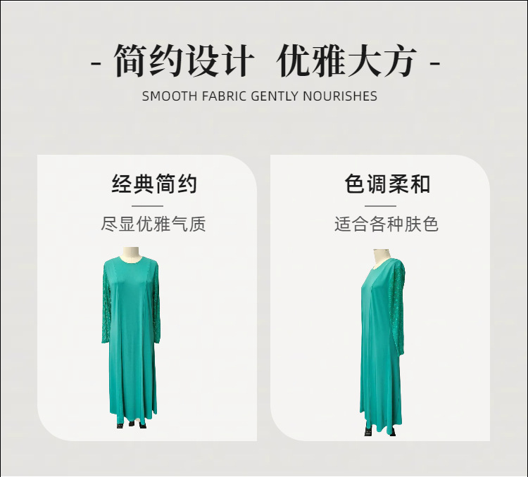 Индивидуальная мусульманская одежда, абая с кружевными рукавами, платья для женщин Ближнего Востока, дубайская круглая горловина, большой размер
