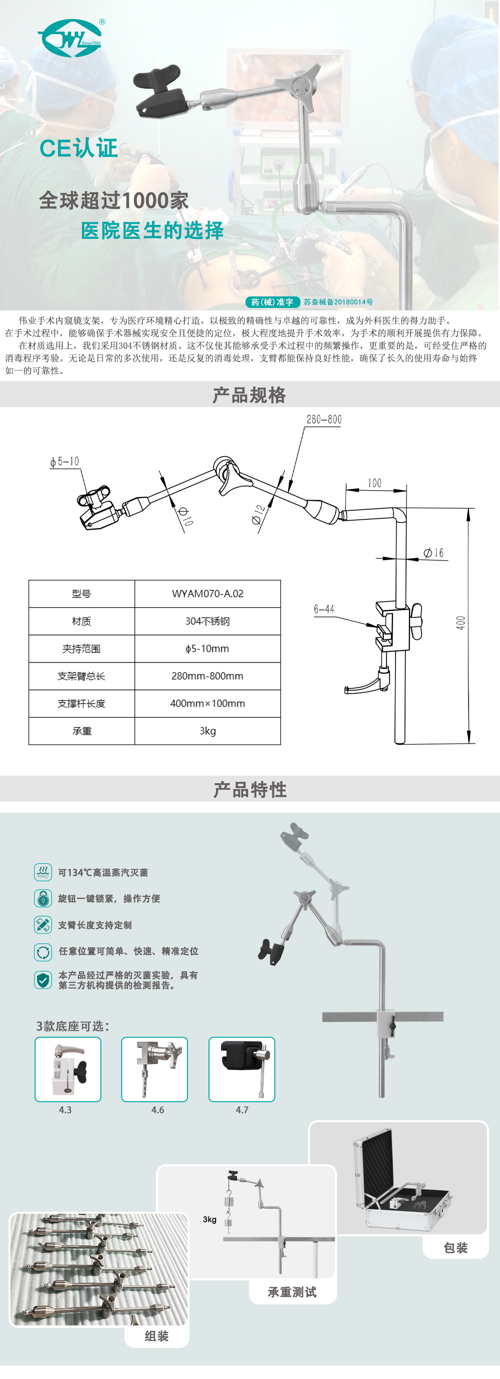 Фиксатор хирургической навигации Weiyi, медицинская универсальная рука, кронштейн хирургического робота из нержавеющей стали