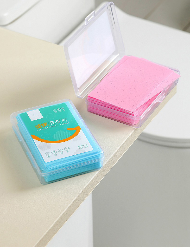 Портативные таблетки для стирки, коробка с бумажными таблетками для стирки, долговечный аромат, таблетки для стирки в дорожном размере