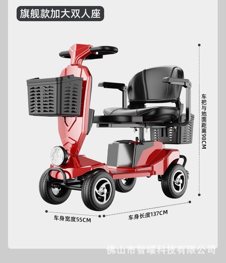Новая модель 2025 года, скутер для пожилых, четырехколесный, двухместный, электрический автомобиль для дома, складной, с аккумулятором