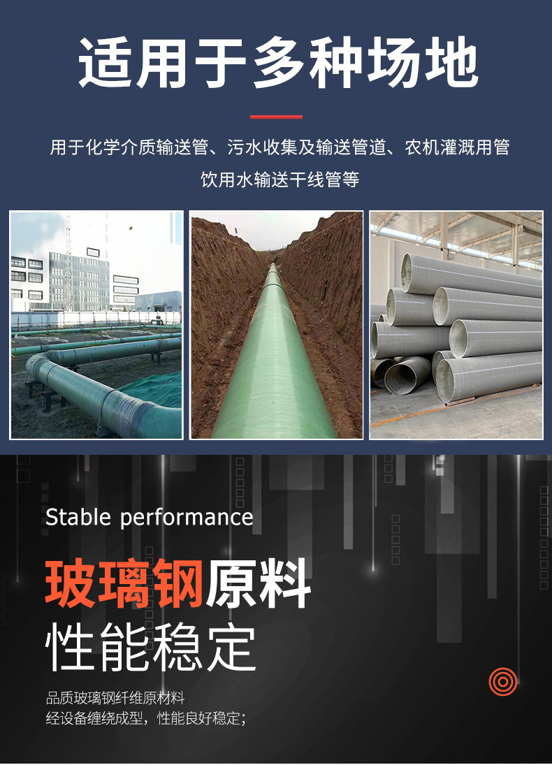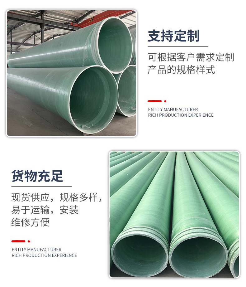 玻璃钢夹砂管道高压工艺管排雨污水排污管道除臭风管防腐缠绕顶管