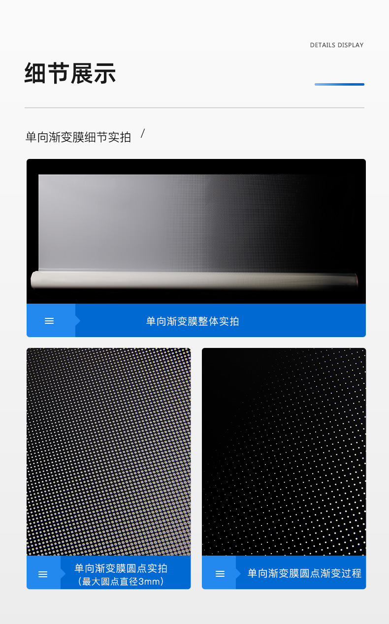 ![]() | One-way white dot gradient film-183x100cm | ¥96.0 / ≈ 1 168 ₽ | 500 | 5838629037079 | |