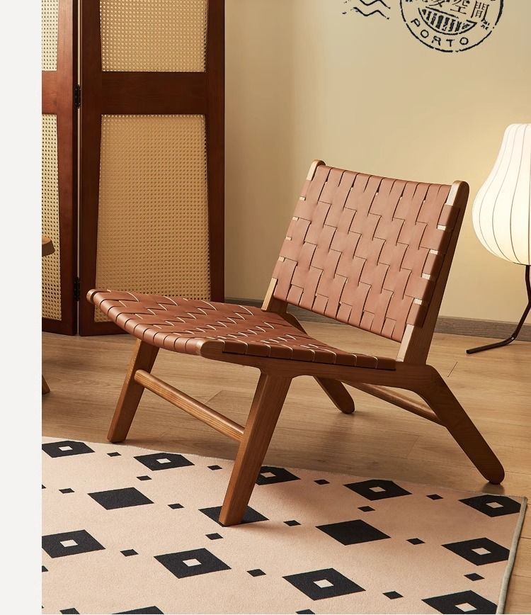 Кресло из седельной кожи, ретро, из массива дерева, простое, с веревочным спинкой, для отдыха, популярное кресло для взрослых