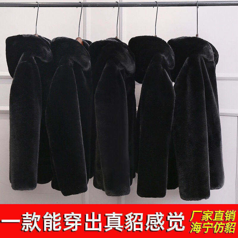 Индивидуальная осень и зима имитация норки верхняя одежда средней длины мужская с капюшоном молния норковая верхняя одежда норковый бархат меховая верхняя одежда