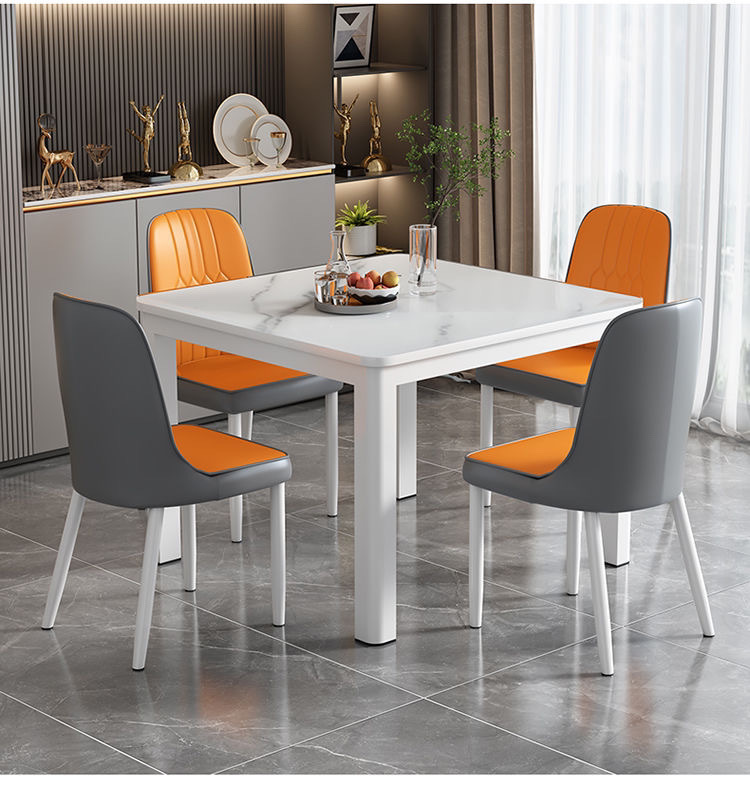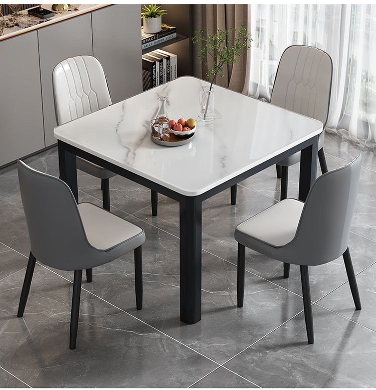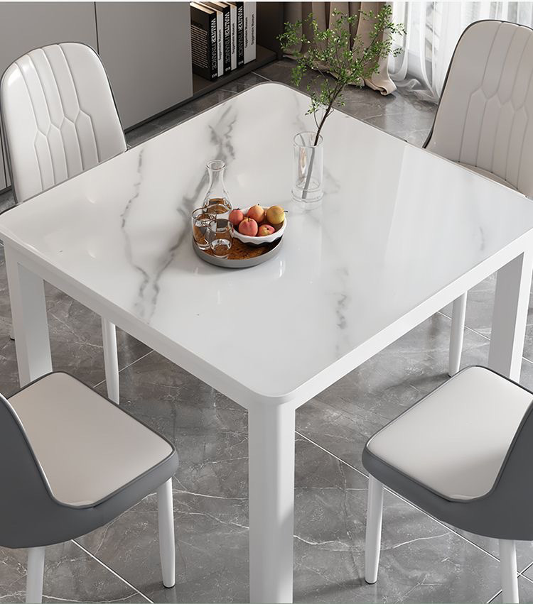 Комплект квадратного обеденного стола и стульев для маленьких квартир, с закаленным стеклянным верхом и стальным каркасом